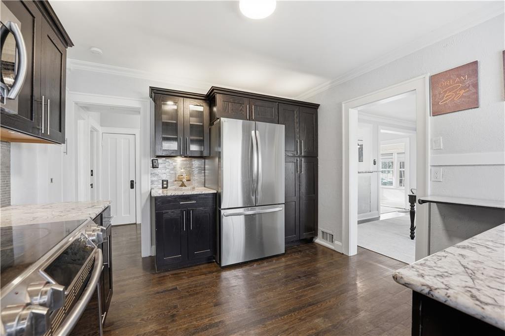 A Brookside Classic in the Heart of It All! Welcome to this charming Brookside home, ideally located near beloved shops, restaurants, and neighborhood amenities. This 4-bedroom, 2-full-bath residence offers a primary bedroom on the main level, hardwood floors throughout, and a comfortable layout designed for both everyday living and entertaining. The kitchen features granite countertops, stainless steel appliances, and a breakfast bar, opening to a spacious formal dining room. Perfect for gatherings!! A bright sunroom adds flexible living space, while the mudroom/laundry room provides added convenience. Outside, enjoy a spacious backyard along with a detached garage and storage shed. A seller-paid 1-year home warranty is included for added peace of mind. This home blends classic Brookside character with a location that truly enhances the lifestyle.