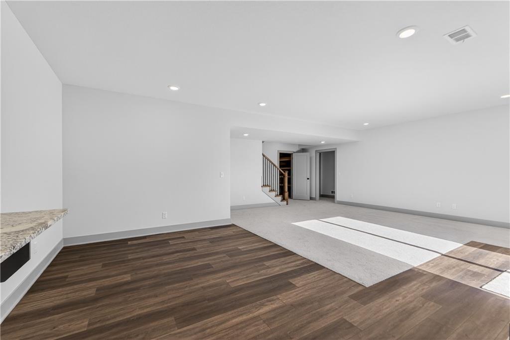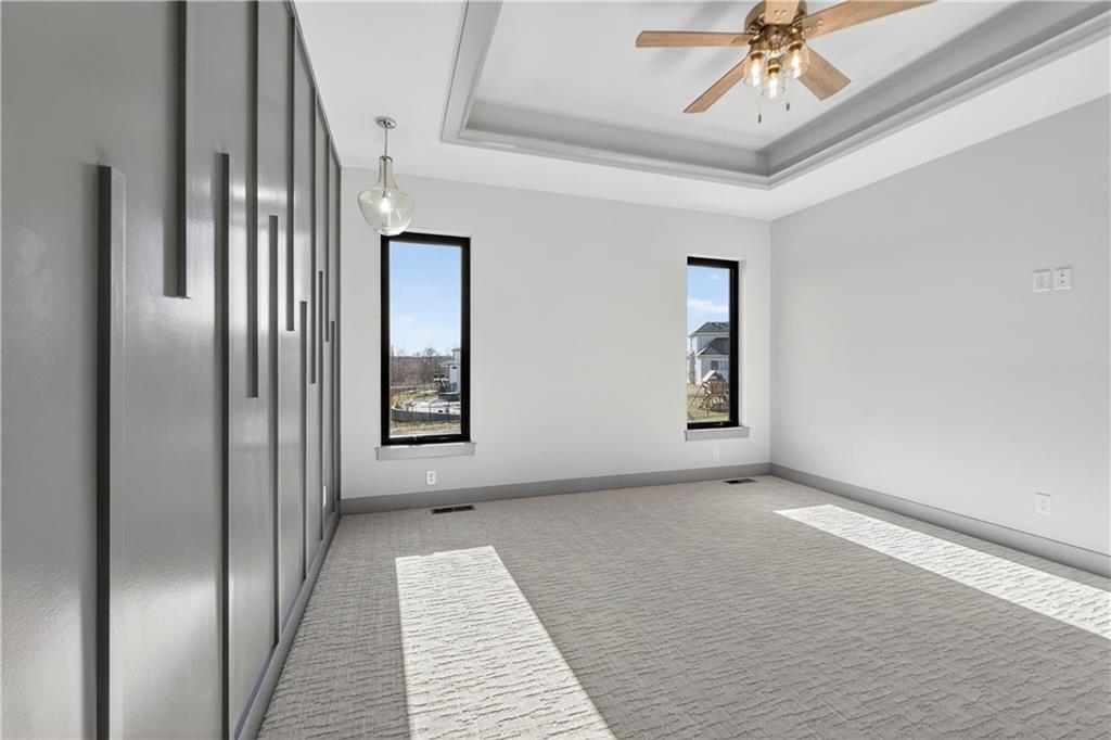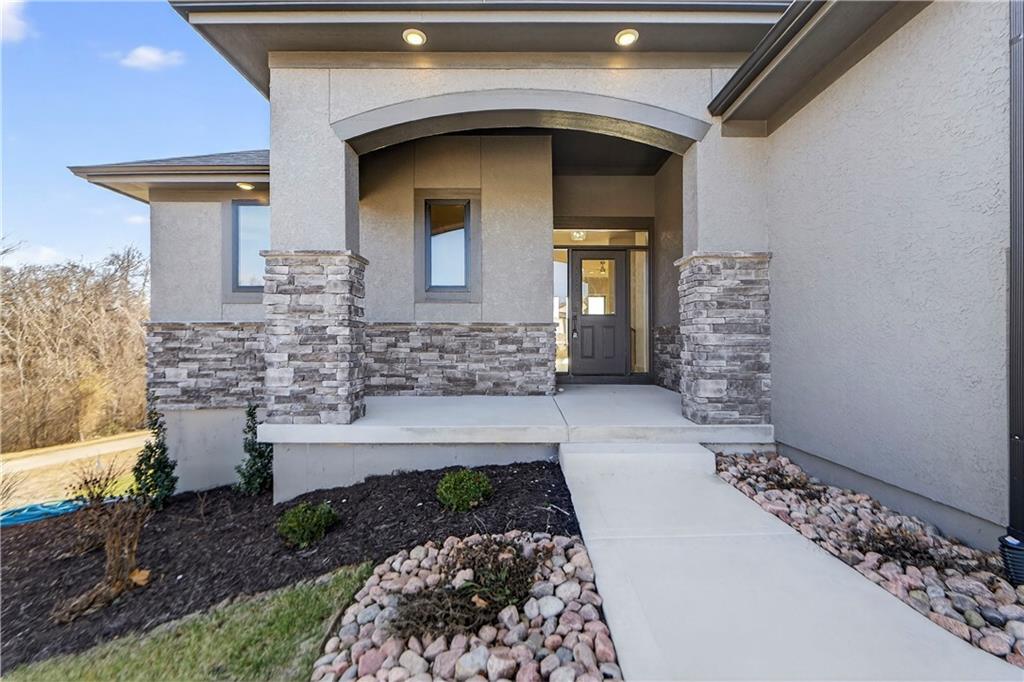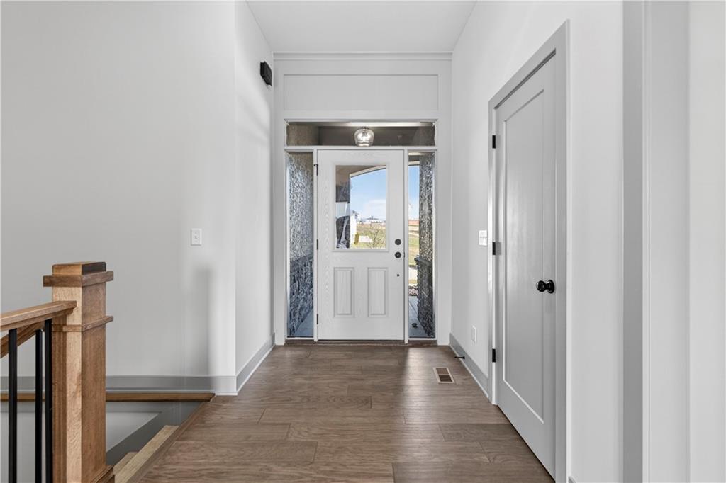 Situated on a premium, private lot backing to serene green space, trails, and a meandering creek, this Reverse 1.5-Story offers the perfect balance of modern luxury and everyday comfort. The thoughtfully designed 4-bedroom, 3-bath layout accommodates both peaceful mornings and effortless entertaining. The main level is anchored by a kitchen featuring sleek quartz countertops, custom cabinetry, a gas cooktop with striking statement hood, and a double-oven configuration with convection microwave. A pocket office is conveniently positioned nearby, while a well-planned mud zone and large pantry seamlessly connects the three-car garage for easy organization and daily functionality. Sunlight fills the great room as it flows into the primary suite, with the laundry thoughtfully located just steps away. A secondary main-level bedroom is privately tucked away—not immediately off the front entry—offering flexibility for guests or a more private home office. The walkout lower level is bright and inviting, designed for gatherings with a spacious recreation room, wet bar, and two generously sized bedrooms. Outdoors, enjoy the tranquility of a peaceful dead-end street with minimal neighbors, an expansive backyard, and an in-ground sprinkler system. Ideally located just minutes from shopping, dining, and entertainment along Adam’s Dairy Parkway, with quick access to I-70 for effortless commuting. Exceptional design, privacy, and convenience come together here—schedule your private tour and experience it for yourself.