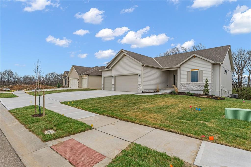 The Bridgeport III floorplan built by Drippé Homes. Open concept daylight basement with tons of natural light! Kitchen furnished with stainless appliances, gas cooktop, hood vent, microwave, wall oven, quartz countertops, large island with oversized sink and spacious walk in pantry. Three bedrooms on main with primary opposite other bedrooms. Ensuite features double vanity, tiled walk-in shower, private water closet and gigantic closet with pass through to laundry. Mudroom off garage with boot bench. Finished basement with two additional bedrooms and rec room complete with wet bar, ready for hosting the next big game. Cozy up to the fireplace in the living room or enjoy the sunrise from the covered composite deck. Home backs to tree-line providing ultimate privacy with sod and sprinkler system included. Unfinished basement storage and three car garage provide plenty of storage. Estimated completion March 2026.