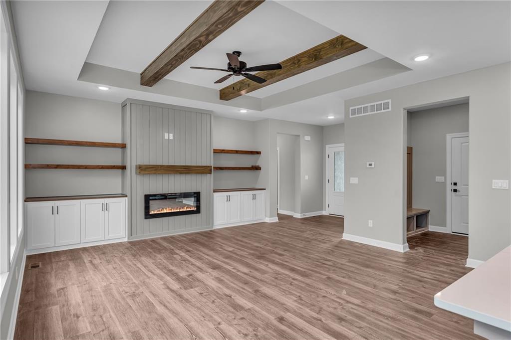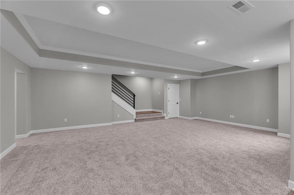 The Bridgeport II floorplan built by Drippé Homes. Open concept daylight basement with tons of natural light! Rustic ceiling beams, stucco front, and gorgeous built ins. Kitchen furnished with stainless appliances, gas cooktop, hood vent, microwave, wall oven, quartz countertops, large island with oversized sink and spacious butlers pantry. Two bedrooms on main with primary opposite other bedroom. Ensuite features double vanity, tiled walk-in shower, private water closet and gigantic closet with pass through to laundry. Mudroom off garage with boot bench. Finished basement with two additional bedrooms and rec room complete with wet bar, ready for hosting the next big game. Cozy up to the fireplace in the living room or enjoy the sunrise from the covered composite deck. Home backs to tree-line providing ultimate privacy with sod and sprinkler system included. Unfinished basement storage, built-ins and three car garage provide plenty of storage. Almost ready for your personal touch - schedule a showing today!