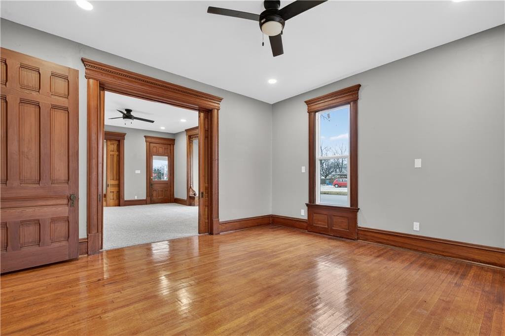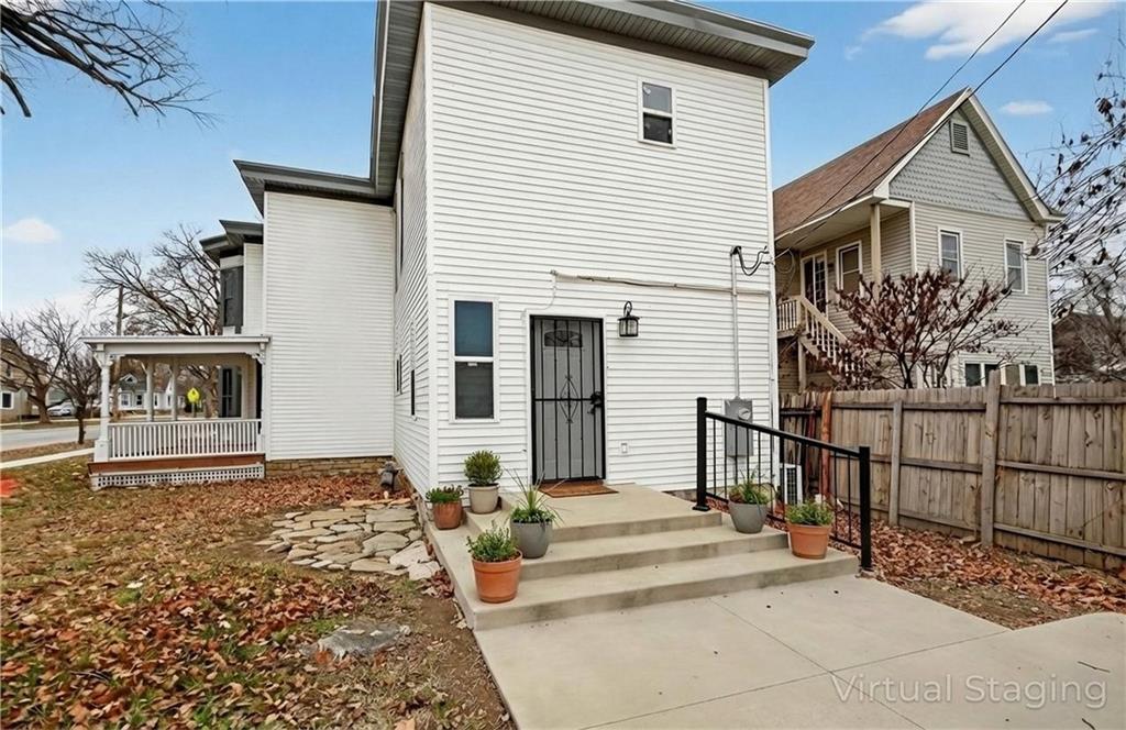 Feel like you're are on vacation every day when coming home to this beautiful turn of the century retreat! Upon entry, your breath will be taken away by the beautiful hand crafted wood work, lead windows & lighting. Original decorative 19th century fireplaces with French tile design & cast insets are a focal point in the front entry library, living room & dining room areas. Enjoy the reading porch found off the living room, or open the oak pocket doors separating 3 rooms & create a great room for entertaining friends. Hand crafted custom details are found throughout the entire home. Although much of the original beauty has been restored, many modern updates are also found to provide comfort & energy efficiency, making this a home you can truly enjoy. Nestled in the historical district of Fort Scott, this home offers endless opportunities due to it's size, location & functionality. Love it as your personal home, or consider using as an Air B&B, office or other venture. The chef's kitchen is a DREAM featuring butcher block counters, white painted cabinetry, all new stainless appliances & accented by white ship lap walls keeping the historical theme intact. The flooring design sets the kitchen apart with a wow factor all of it's own! Off the kitchen you'll find access to the concrete wine/storm shelter, great for storage & extra peace of mind during inclement weather. On the 2nd floor, amazing large bedrooms are found, each with their own unique features & modern updates such as walk in closets, new carpet, recessed lighting, coupled with original charm, woodwork & detail. You'll especially love the two large picture windows with seated/storage windows & antique accent window lights. After a long day, retreat to the 2 spa influenced master baths & enjoy the rain shower, soaking tub & features that were custom designed with pampering you in mind. The home has new electric, plumbing, insulation, Heat & Air, insulated windows, instant hot water, smart thermostat, & more.