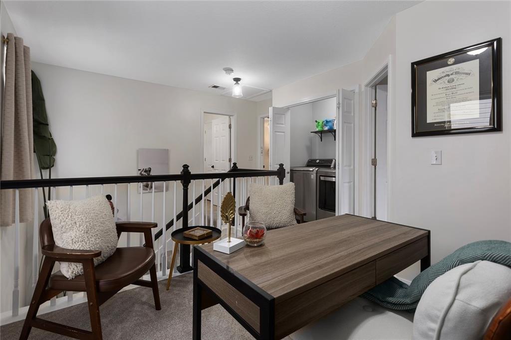 Professional photos coming soon! This beautifully updated two-story home offers comfortable living with thoughtful updates throughout. The main level features an inviting living room with a cozy fireplace and brand-new luxury vinyl flooring, while the dining room and kitchen feature ceramic tile. The updated kitchen offers quartz countertops, modern finishes, and updated light fixtures. A convenient main-level half bath adds everyday functionality. All appliances stay, including the washer and dryer. A one-car garage provides convenient parking and storage. Step outside to enjoy the brand-new oversized deck with gate and stairs, perfect for entertaining or relaxing, all while overlooking one of the largest lots in the subdivision. The second level offers a spacious primary suite with a private bath and large walk-in closet, a generous second bedroom served by a second full bath, and a nicely sized loft ideal for a home office or play area. The bedroom level also includes a convenient laundry area for maximum ease. Brand-new carpet adds comfort throughout the upper level. The fully finished basement adds exceptional versatility with a third full bath and durable epoxy concrete floors, making it ideal for an additional family room, office, or non-conforming third bedroom. Major mechanical updates include a newer HVAC system and hot water tank. This low-maintenance community enhances everyday living with HOA services that include snow removal, lawn care, fresh mulch, and power washing of the siding. The HOA provides umbrella insurance covering common areas; owners typically carry an HO-6 policy for personal contents, interior coverage, and potential HOA deductible assessments.