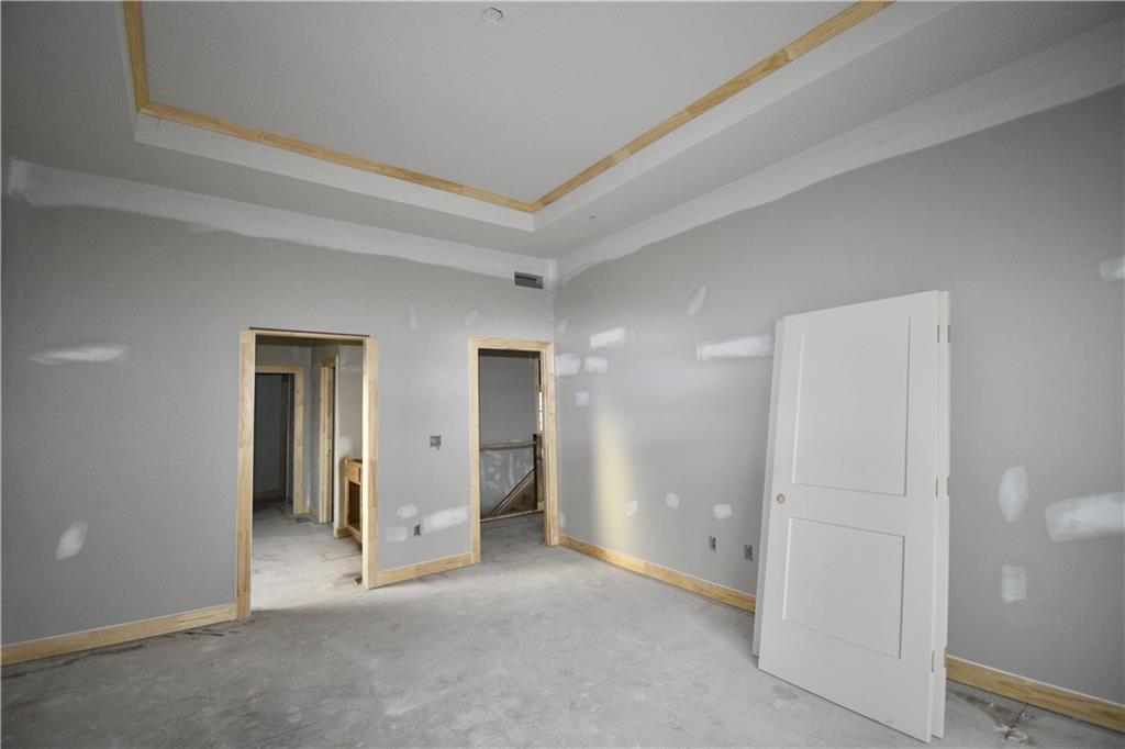 The McKinley by Hearthside Homes is a stunning Reverse 1.5 Story offering 4 bedrooms, 3 baths, and over 2,800 sq ft of well-appointed living space that blends comfort, craftsmanship, and modern style. The open-concept main level features hardwood floors, abundant natural light, and a great room anchored by a sleek linear fireplace. The kitchen impresses with quartz countertops, a contrasting island and hood, and a black Silgranit sink—balancing beauty and function. The dining area opens to a covered deck overlooking the backyard. The primary suite delivers a true retreat with a freestanding tub, tiled shower, dual vanities, and a spacious walk-in closet that connects directly to the laundry room. A secondary bedroom, full bath, and laundry complete the main level. The finished walkout lower level adds a large rec room with wet bar, two bedrooms with walk-in closets, a full bath, and generous storage space. An oversized patio enhances outdoor living and is perfect for entertaining or quiet relaxation. Mid April completion date. This home is built with double-wall construction, I-joist floor systems, and engineered roof trusses for strength and durability. Every Hearthside home also includes a video-recorded sewer scope, third-party duct cleaning, and a third-party inspection process to help ensure quality and peace of mind. Hearthside Homes has been building in the Kansas City area since 1987 and is known for quality construction and a streamlined building experience. ***Hearthside includes an exceptional warranty package: 1 year of whole-house coverage, 2 years of mechanical systems protection, and a 10-year major structural warranty. Plus, a third-party inspection with sewer line review and HVAC duct cleaning.*** UPDATED PHOTOS COMING SOON! Outstanding community amenities include; swimming pool, pickle ball court, 3 acre fishable pond, outdoor pavilion area w/2 fireplaces, rentable clubhouse with kitchen & party space & internet!