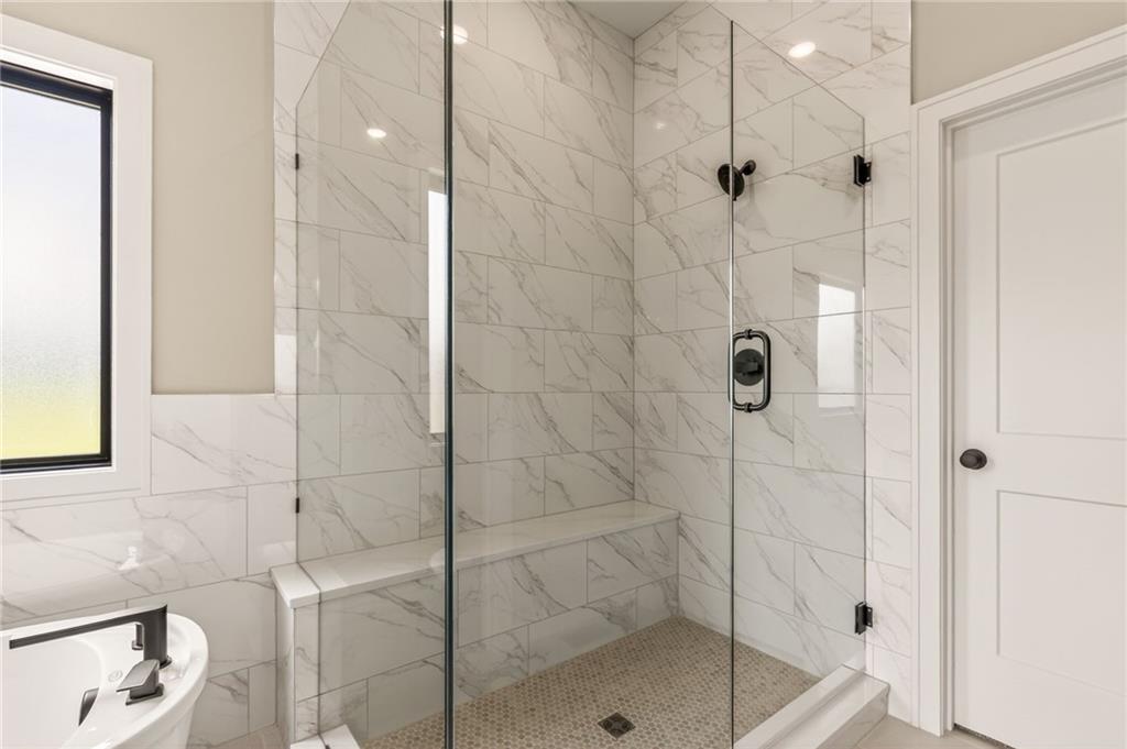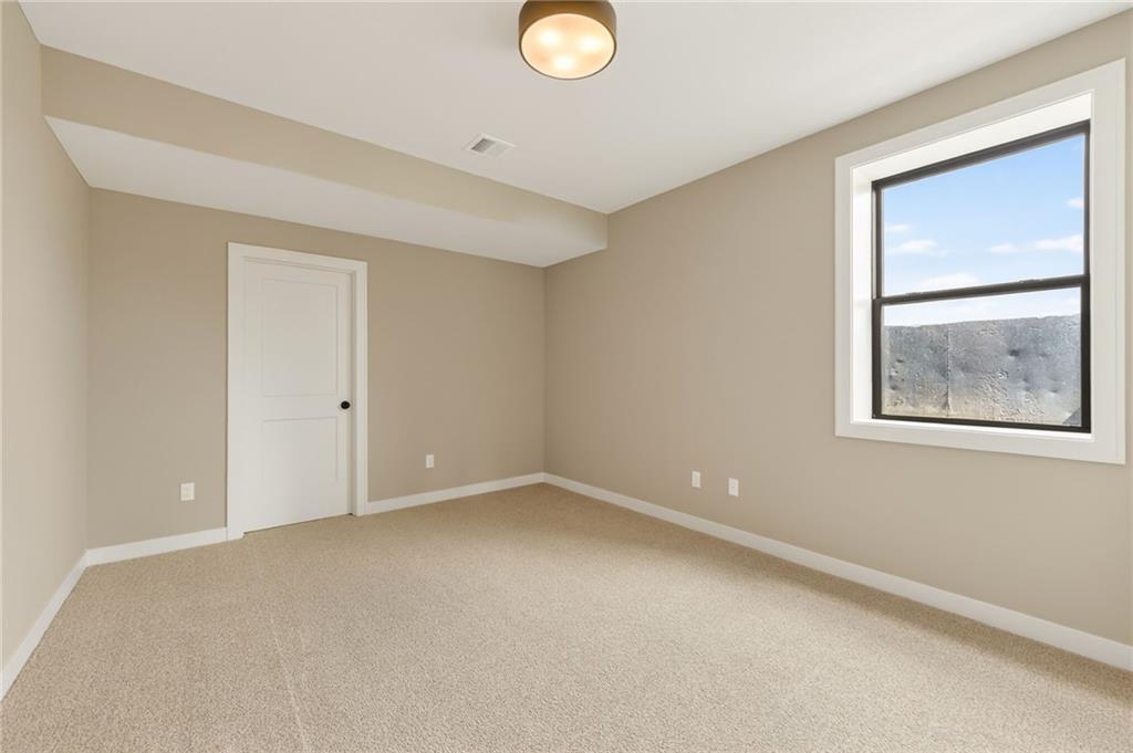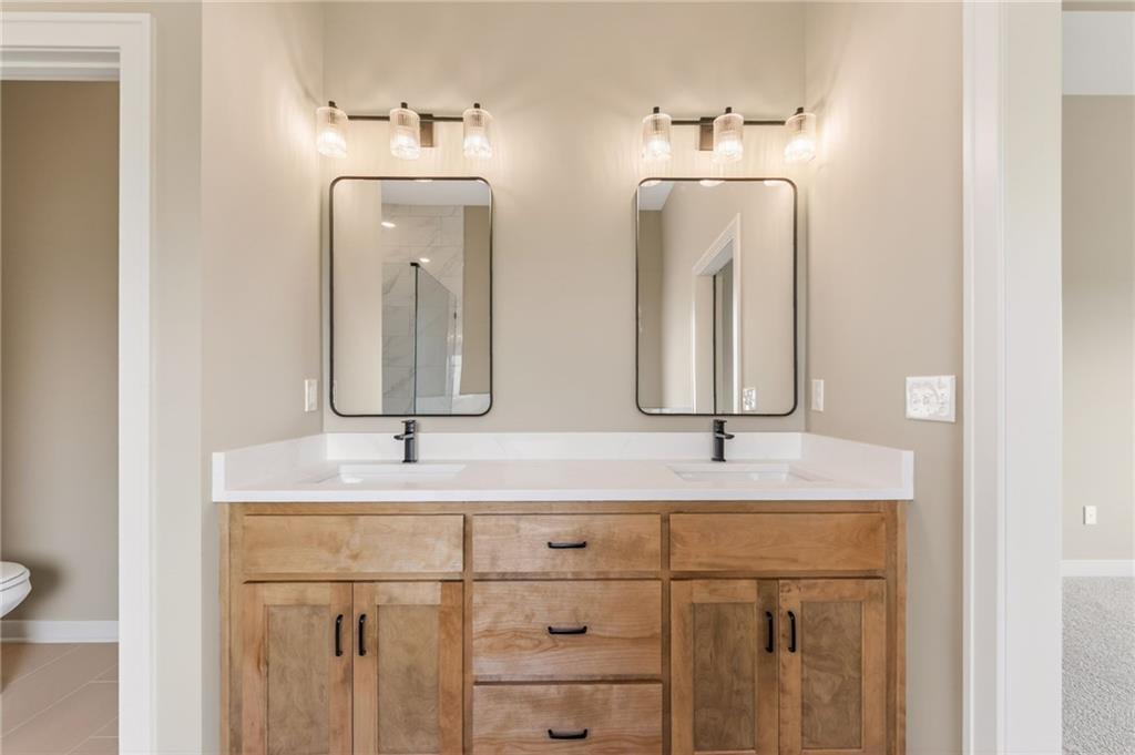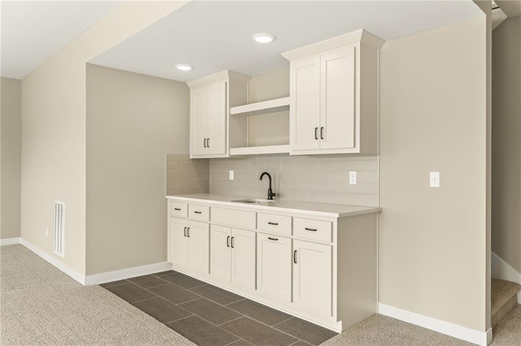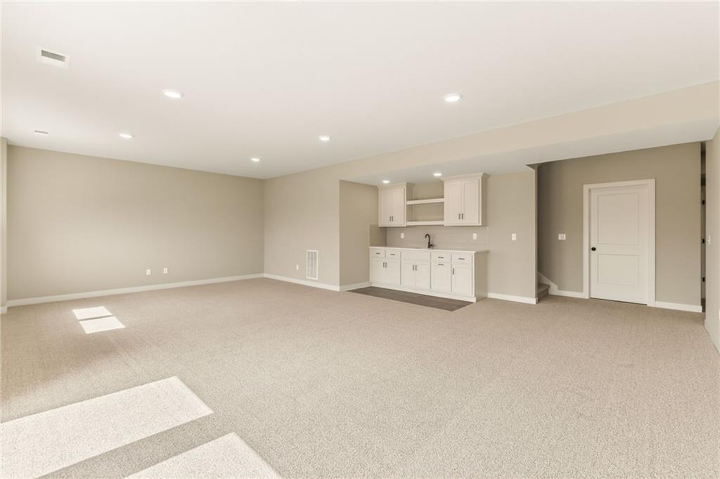 The McKinley by Hearthside Homes is a stunning Reverse 1.5 Story offering 4 bedrooms, 3 baths, and over 2,800 sq ft of well-appointed living space that blends comfort, craftsmanship, and modern style. The open-concept main level features hardwood floors, abundant natural light, and a great room anchored by sleek linear fireplace. The kitchen impresses with quartz countertops, a contrasting island and hood, and a black Silgranit sink—balancing beauty and function. Dining area opens to covered deck overlooking the backyard. Home ready-MID-APRIL. The primary suite delivers a true retreat with a freestanding tub, tiled shower, dual vanities, and a spacious walk-in closet that connects directly to the laundry room. A secondary bedroom, full bath, and laundry complete the main level. The finished walkout lower level adds a large rec room with wet bar, two bedrooms with walk-in closets, a full bath, and generous storage space. An oversized patio enhances outdoor living and is perfect for entertaining or quiet relaxation. Mid April completion date. This home is built with double-wall construction, I-joist floor systems, and engineered roof trusses for strength and durability. Every Hearthside home also includes a video-recorded sewer scope, third-party duct cleaning, and a third-party inspection process to help ensure quality and peace of mind. Hearthside Homes has been building in the Kansas City area since 1987 and is known for quality construction and a streamlined building experience. ***Hearthside includes an exceptional warranty package: 1 year of whole-house coverage, 2 years of mechanical systems protection, and a 10-year major structural warranty. Plus, a third-party inspection with sewer line review and HVAC duct cleaning.*** Outstanding community amenities include; swimming pool, pickle ball court, 3 acre fishable pond, outdoor pavilion area w/2 fireplaces, rentable clubhouse with kitchen & party space & internet!