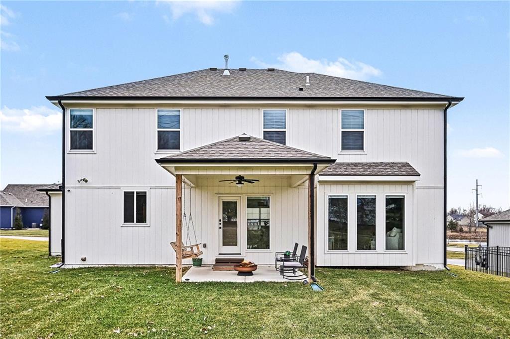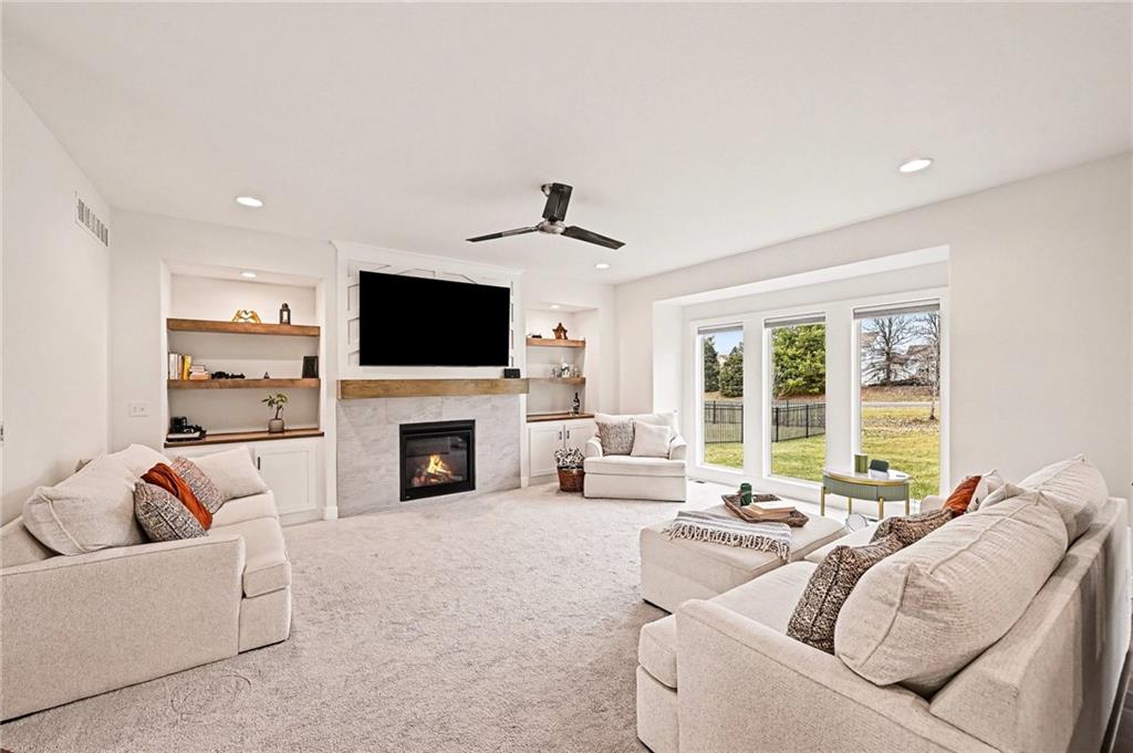 Stunning Two-Story Willow Plan with Recent Upgrades! New window coverings, an enlarged kitchen island, and upgraded appliances elevate this already impressive home. Granite countertops, a walk-in pantry, and an open layout make entertaining effortless. The formal dining room flows into the great room featuring a fireplace, built-in cabinets, and floating shelves, with carpet adding warmth throughout. Upstairs offers a luxurious primary suite with adjacent laundry, freestanding tub, large shower, and walk-in closet, plus three additional bedrooms including one with a private bath. Enjoy the covered patio on this non-walkout lot.