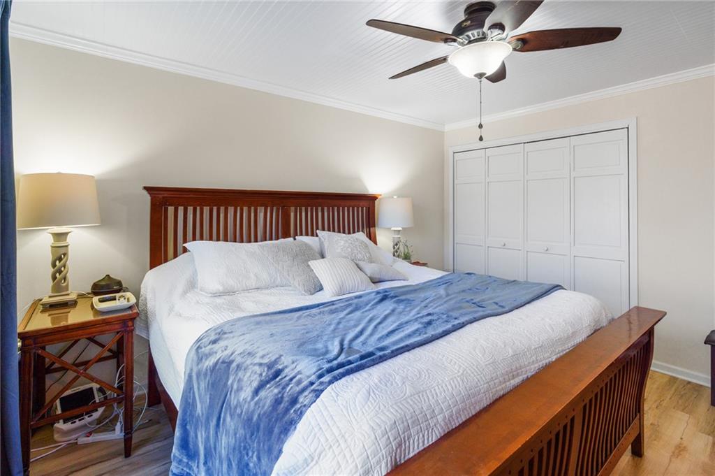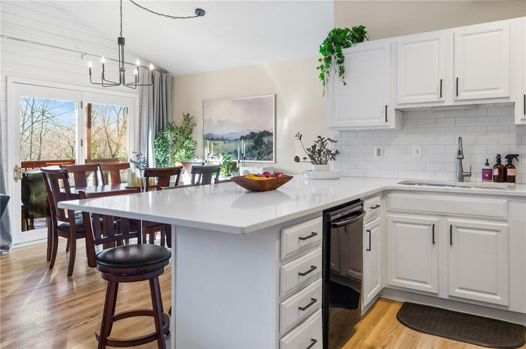 Lake Viking rare find with a boat slip at the Yacht Club. This property is situated on 1.3 acres near the South Entrance and offers a private, wooded setting with abundant wildlife and a treehouse-like feel. The home features 3 bedrooms and 3 bathrooms with numerous recent updates, including a new roof, new flooring, shiplap accent walls and ceilings, and fresh paint throughout. The open-concept kitchen includes freshly painted cabinets, quartz countertops, and comes fully equipped with appliances, including the washer and dryer. The primary bedroom offers a shower and a large window with peaceful views of the wooded lot. For those seeking a quiet retreat, the large covered and screened-in porch provides an ideal space to relax and enjoy the natural surroundings. The unfinished basement includes a pellet stove and offers excellent potential for a workshop or future finished living space. Additional features include a one-car garage. The sellers are open to offers on furnishings, and the boat is available for purchase separately.