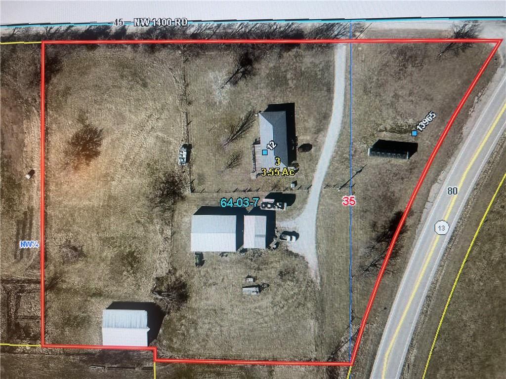 From 13 Hwy, turn west on SW 1300th Rd, continue just 360 ft to driveway.