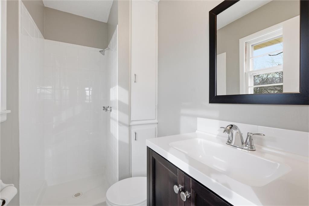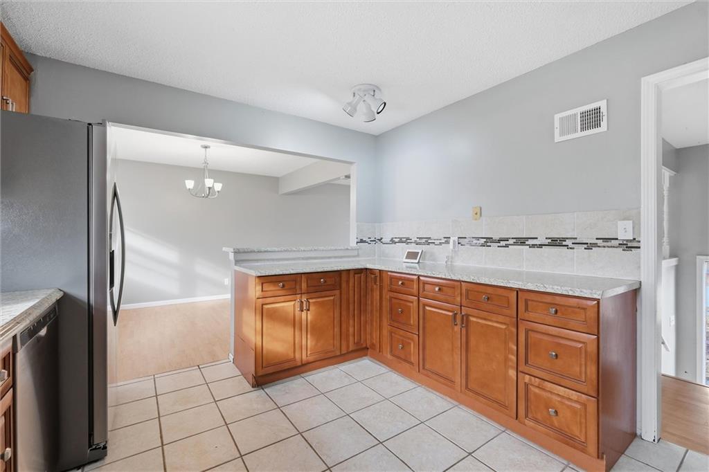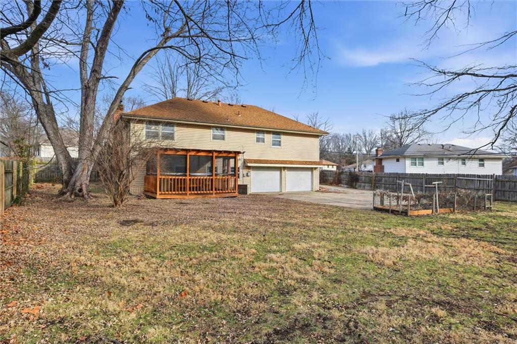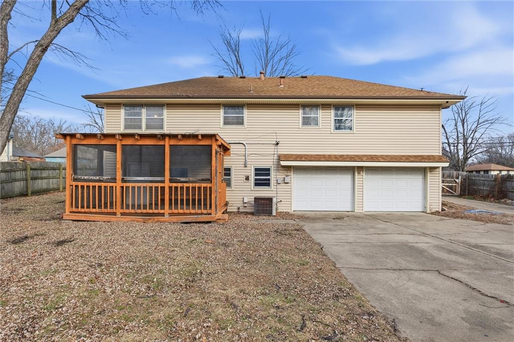 Open the front door and feel right at home. This inviting space offers plank flooring throughout the main living areas and a layout that feels both comfortable and functional. The kitchen is a true chef's dream with stainless steel appliances, newer cabinetry, a custom backsplash with mosaic tile, an abundant amount of countertop space for cooking or baking, and ceramic tile flooring. All bedrooms are carpeted for added comfort. The primary bedroom features a private ensuite bath that features a newer vanity, a tile surround shower, and cabinets for added storage. Downstairs, the basement adds even more room to spread out. With a fireplace that makes the space warm and welcoming, this level works perfectly as a rec room, movie night hangout, or extra living area. The third full bathroom is also located on this level, along with access to a covered, screened-in deck—an ideal spot to unwind and enjoy the backyard in any season. Outside, you’ll find a fenced driveway leading to a deep, rear-entry garage, offering added privacy and convenience. The wood privacy fence surrounds the yard, creating a comfortable outdoor space that truly feels like your own.