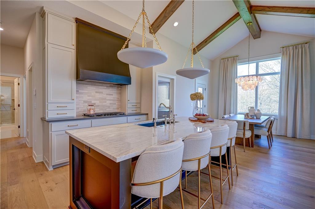 Custom-built by Pfeifer Homes, this stunning second-tier home at Lake Winnebago showcases the sought-after Trinity floor plan in a reverse story and a half design. Situated on a corner lot with a treed backyard, this home offers 3,533 square feet of beautifully finished living space, blending elegant finishes with warm, inviting design. The main level features 2,108 SF with an open concept living area highlighted by cathedral ceilings, beautiful hardwood flooring, striking beams, and light, neutral finishes throughout. The gourmet kitchen offers abundant cabinetry, a prep kitchen with a second oven and microwave, mini fridge, and seamless flow into the living room, perfect for everyday living and entertaining. Step outside to the patio just off the kitchen, complete with a cozy fireplace and built-in storage for cushions or outdoor essentials. The spacious primary suite is a true retreat, featuring a luxurious bathroom and an oversized walk-in closet. A second bedroom and full bath is also located on the main level. A spiral staircase leads to the walkout lower level, offering 1,425 SF of additional living space with a large recreation room, wet bar, game area, two additional bedrooms, two full bathrooms, a half-bath, and generous storage. Additional upgrades include 10-zone irrigation system, landscape upgrades, 2 garage openers, security system with cell dialer, and gorgeous window treatments. As a 2nd tier Lake Winnebago property, this home has ongoing rights to a personal boat slip, just a short walk or golf car ride away. Enjoy all that the Lake Winnebago community has to offer, including a brand-new resort-style pool, horse stables, restaurant, parks, walking trails, tennis and basketball courts, and year-round community events. Come take a look and make this exceptional home your own!