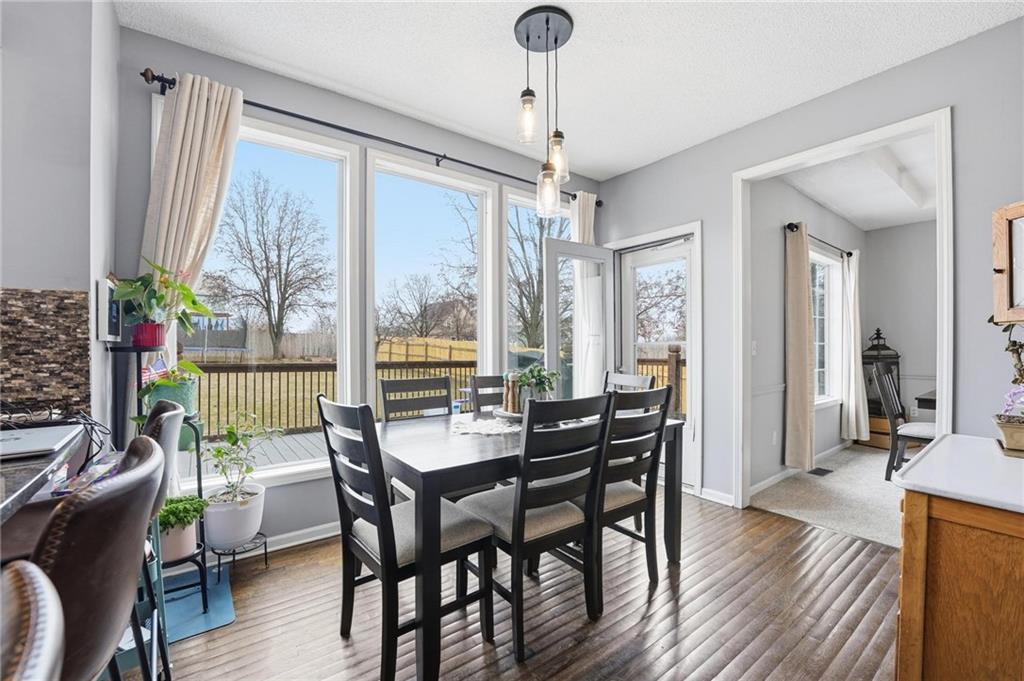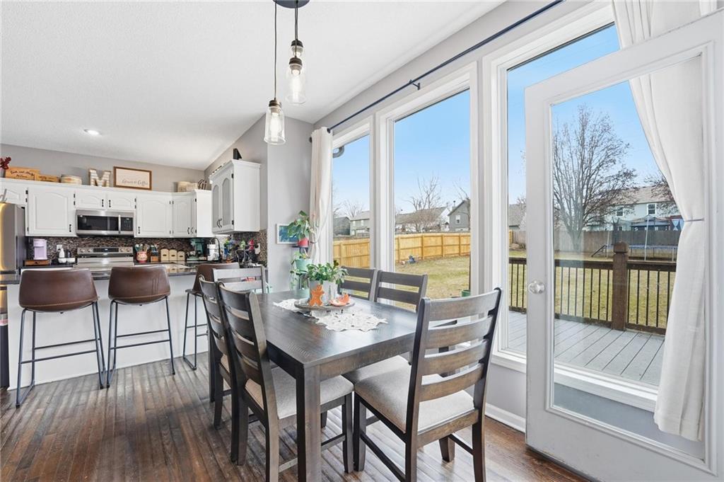 Welcome to this beautiful home, located within walking distance of Riverview Elementary in the highly sought-after De Soto School District. This home is full of thoughtful upgrades you won’t want to miss, including brand-new carpet in the living room, dining room, and staircase, all new light fixtures on the main level and in the upstairs bedrooms, all new Kitchen appliances (Oct 2025) and a newly installed fence valued at $5,100. Step outside to a spacious backyard designed for both fun and relaxation, featuring a composite deck and hot tub—perfect for entertaining or unwinding at the end of the day. As an added bonus, two large TVs will remain with the home, and the existing home warranty can transfer to the buyer, providing added peace of mind through 8/8/26. The main level offers a welcoming living room with a cozy fireplace, a kitchen with granite countertops, and a formal dining room ideal for gatherings. Upstairs, you’ll find a spacious primary bedroom, three additional bedrooms, and the convenience of a laundry room located on the bedroom level. The finished basement expands the living space with a second family room, a bonus room ideal for a home office or non-conforming fifth bedroom, and a full bathroom. Additional updates include fresh exterior paint (July 2025), a roof approximately one year old, four newly replaced front-facing windows, and a brand-new hot water heater. With its extensive updates, incredible features, and prime location near parks and trails, this home offers an exceptional opportunity to buyers!