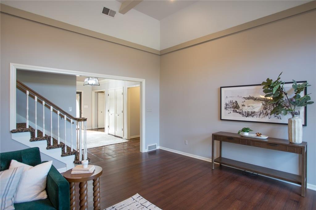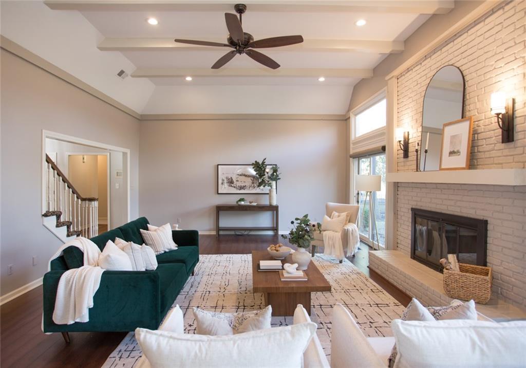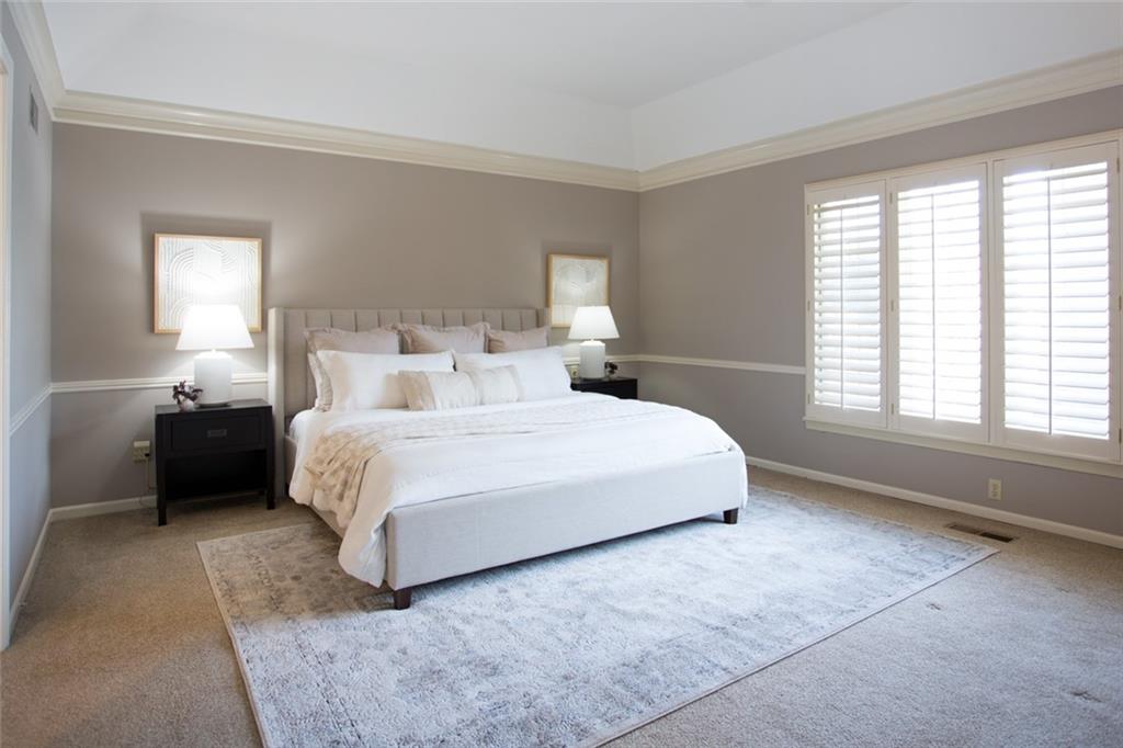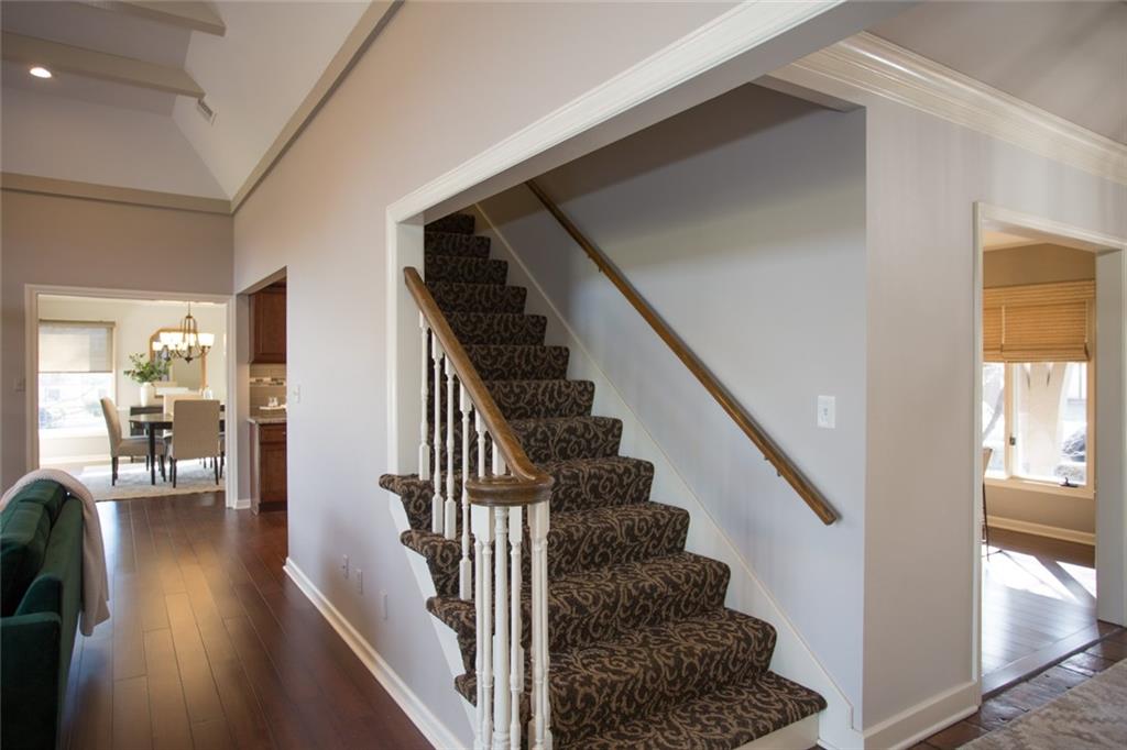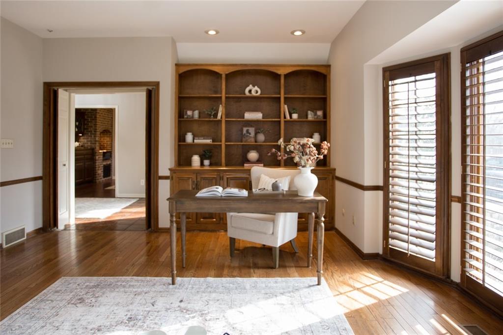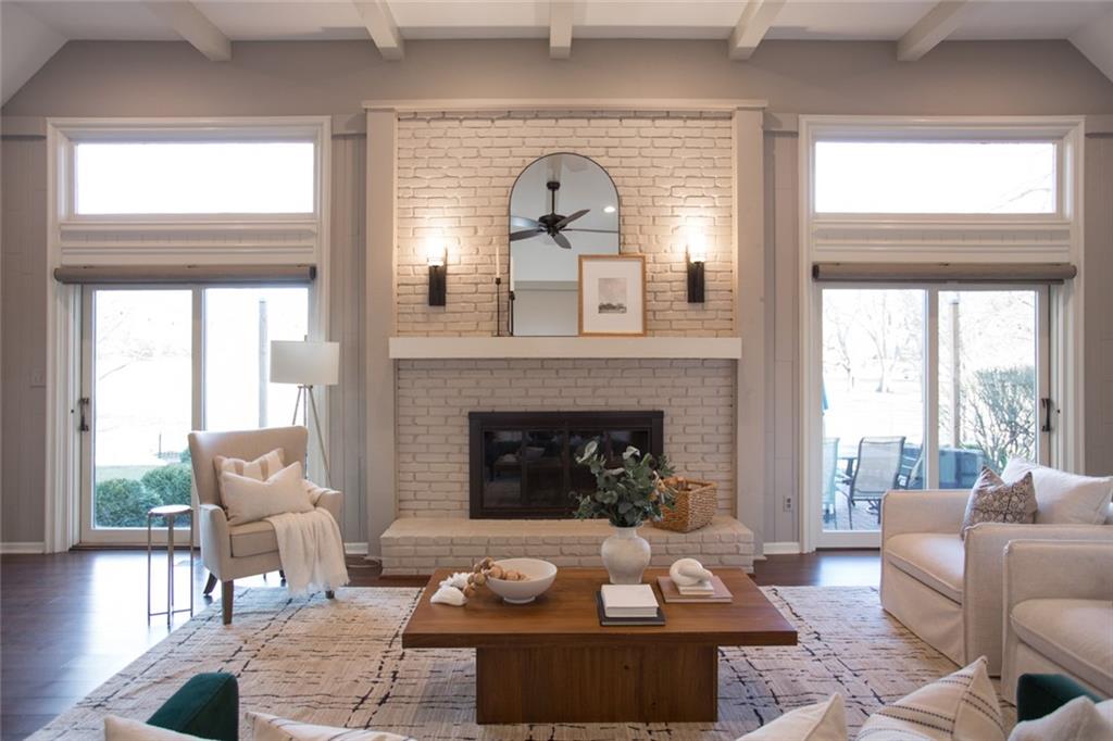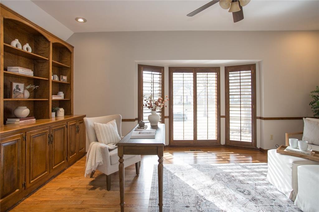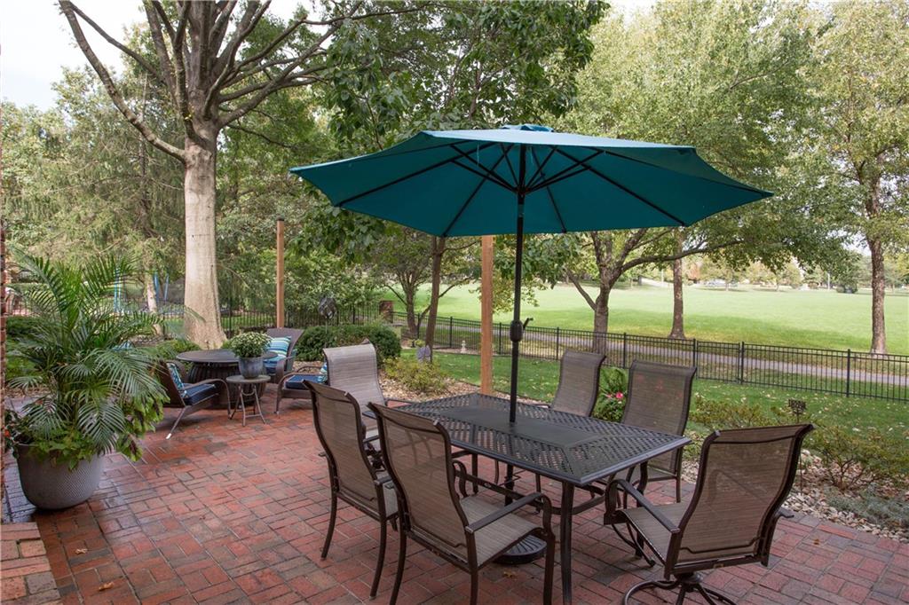 Rare opportunity on one of Prairie Village’s most coveted blocks where homes rarely come available. One of only four homes backing directly to Franklin Park, this stately residence offers exceptional privacy and park views. The floor plan is truly special: open and connected, yet thoughtfully designed with distinct spaces that maintain a timeless, traditional feel. A bright office/den features custom built-ins, large windows, and a wood-burning fireplace. The inviting kitchen offers generous cabinetry, a breakfast bar, and an eat-in nook with built-in buffet. Tons of storage and seating options to fit the whole family. The heart of the home is the expansive great room with high ceilings, exposed beams, floor-to-ceiling windows, and a beautiful fireplace, all overlooking Franklin Park. Designed for both everyday living and entertaining, the layout flows seamlessly to the outdoor brick patio. A convenient laundry room is located between the kitchen and garage. Washer and Dryer stay with the home. The main-floor primary suite includes a spacious bedroom, walk-in closet, ample counter space, and a soaking tub. Upstairs are three large bedrooms, two full bathrooms, an oversized linen closet, and abundant storage throughout. Elegant, warm, and functional, this is a truly special home in a location that cannot be replicated.