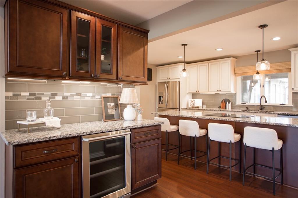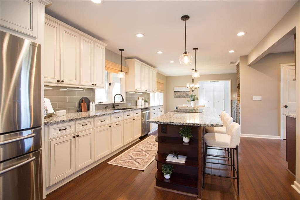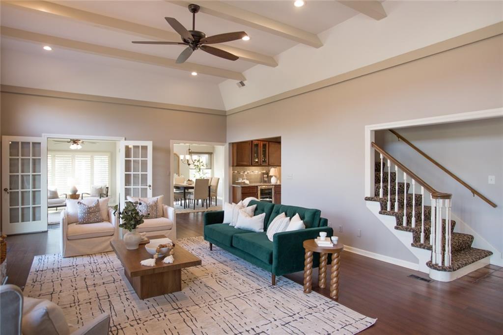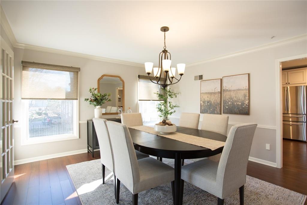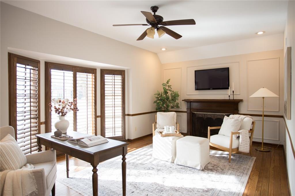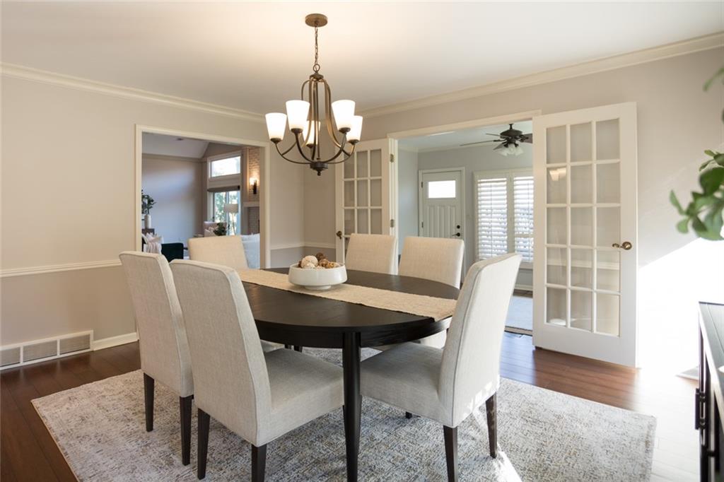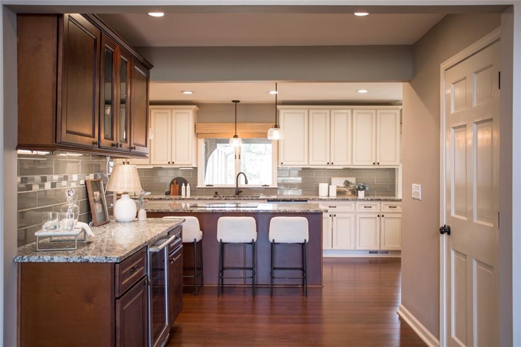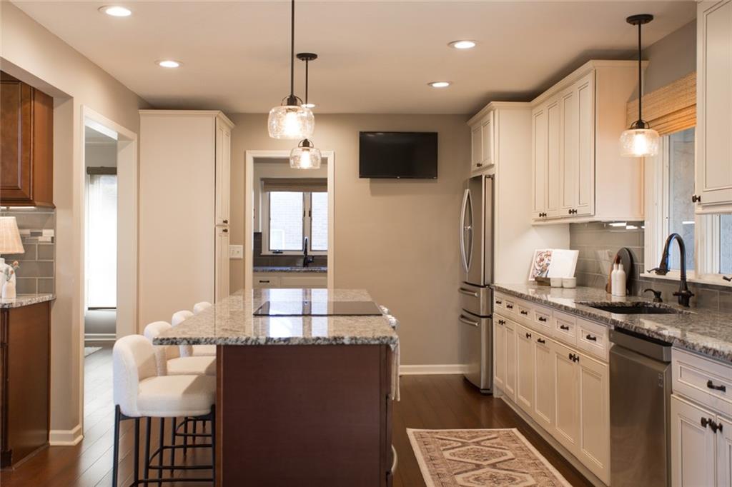 Rare opportunity on one of Prairie Village’s most coveted blocks where homes rarely come available. One of only four homes backing directly to Franklin Park, this stately residence offers exceptional privacy and park views. The floor plan is truly special: open and connected, yet thoughtfully designed with distinct spaces that maintain a timeless, traditional feel. A bright office/den features custom built-ins, large windows, and a wood-burning fireplace. The inviting kitchen offers generous cabinetry, a breakfast bar, and an eat-in nook with built-in buffet. Tons of storage and seating options to fit the whole family. The heart of the home is the expansive great room with high ceilings, exposed beams, floor-to-ceiling windows, and a beautiful fireplace, all overlooking Franklin Park. Designed for both everyday living and entertaining, the layout flows seamlessly to the outdoor brick patio. A convenient laundry room is located between the kitchen and garage. Washer and Dryer stay with the home. The main-floor primary suite includes a spacious bedroom, walk-in closet, ample counter space, and a soaking tub. Upstairs are three large bedrooms, two full bathrooms, an oversized linen closet, and abundant storage throughout. Elegant, warm, and functional, this is a truly special home in a location that cannot be replicated.