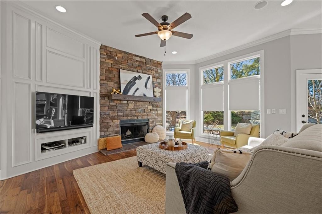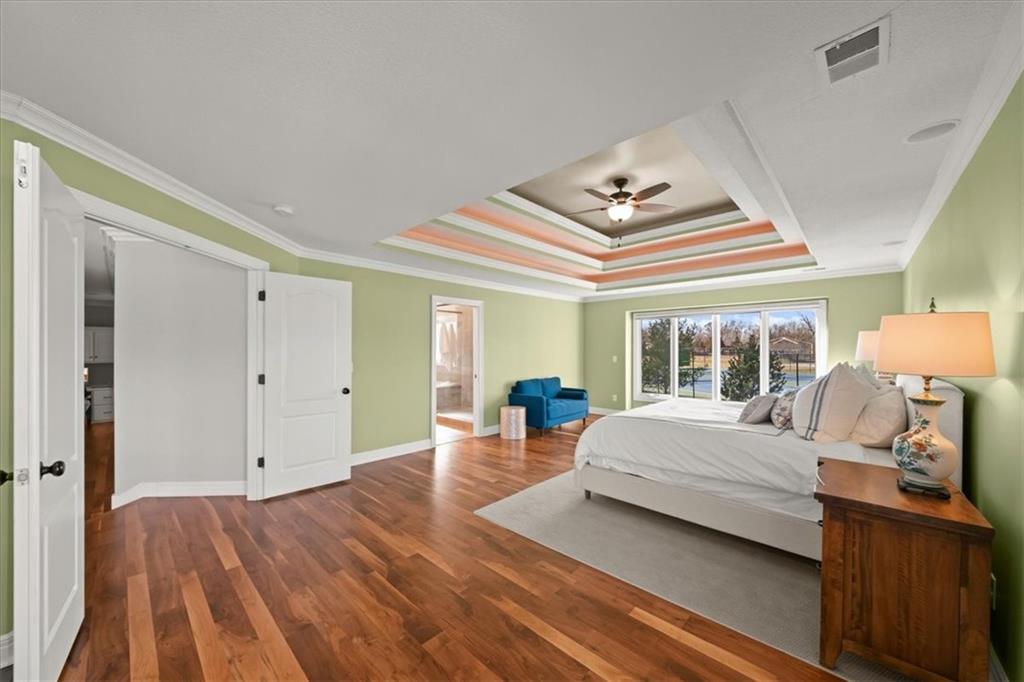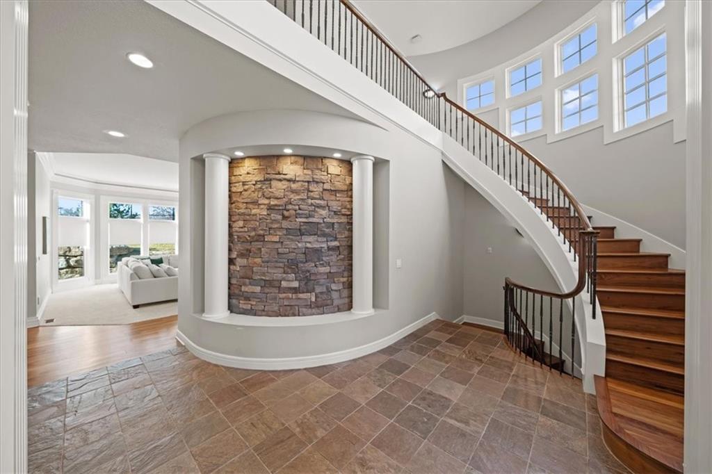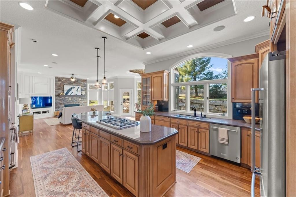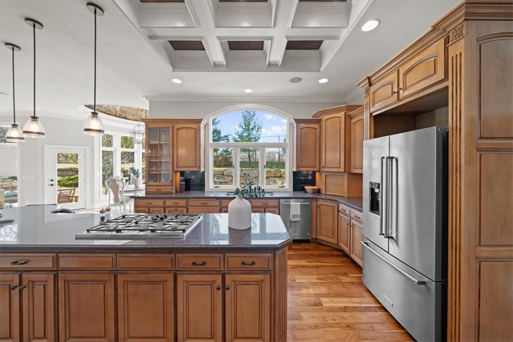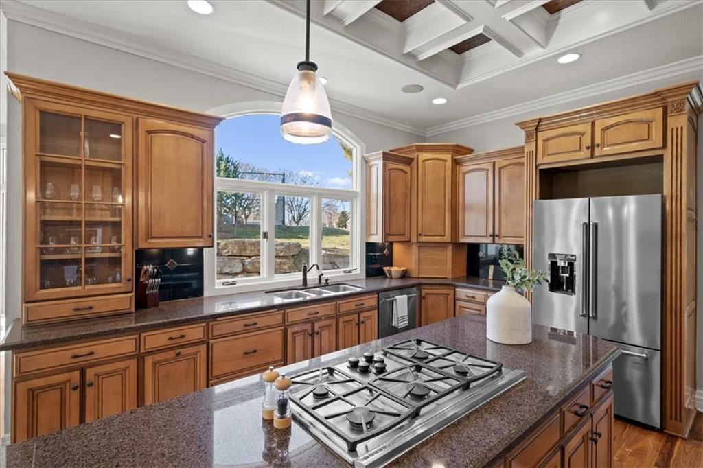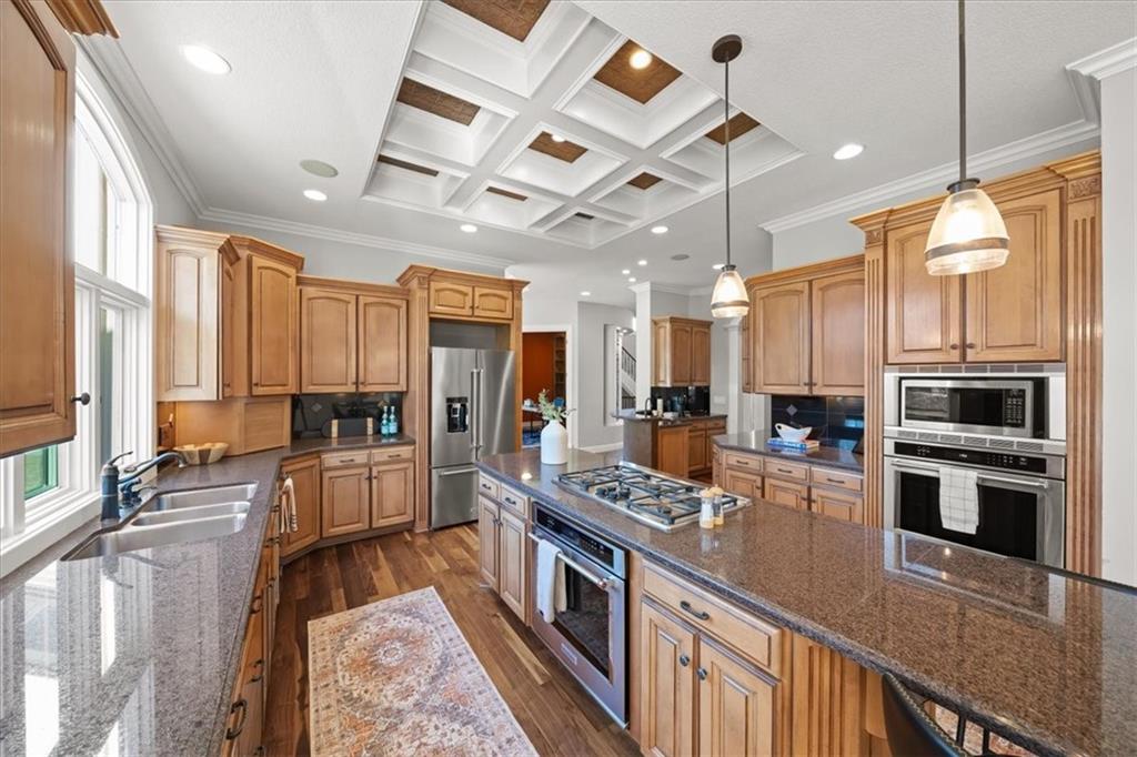 Beautiful design meets convenience and function in this architectural showpiece in the coveted Riss Lake community. With only three of these custom homes ever constructed, this Mark Bolling home will take your breath away. A hand painted mural, hidden children's nook, and 3 separate outdoor spaces, this home is truly special and not like anything you have seen at the lake. Earthy stone accent walls, beautiful wide plank walnut floors, multiple living and dining spaces and a grand kitchen make the main floor great for intimate evenings at home or perfect for entertaining. All bedrooms are spacious and privately appointed with their own en-suite baths. The owner’s suite is a true retreat, offering spa-caliber finishes including an oversized double walk-in shower and a secluded martini deck for quiet relaxation. The walkout lower level is designed to impress, featuring a full second kitchen, expansive recreation and entertainment area with a large projection screen, a dedicated workout room with sauna, and a rare suspended garage ideal for additional storage. Throughout the approximately 5,500 square feet, you’ll find custom built-ins, smart home technology by Applause Home Audio and Security, and numerous recent updates—including new carpet and new windows—enhancing both Room to spread out but a layout that still feels cozy is what makes this really feel like the perfect family home. Step outside and enjoy unparalleled access to the amenities that define Riss Lake living. Why maintain a pool when the neighborhood saltwater pool, tennis courts, and playground sit just beyond the back door, while the community’s 135-acre recreational and fishing lake is only two blocks away. Architecturally distinctive, and impeccably crafted, this home represents a rare chance to own something truly special.