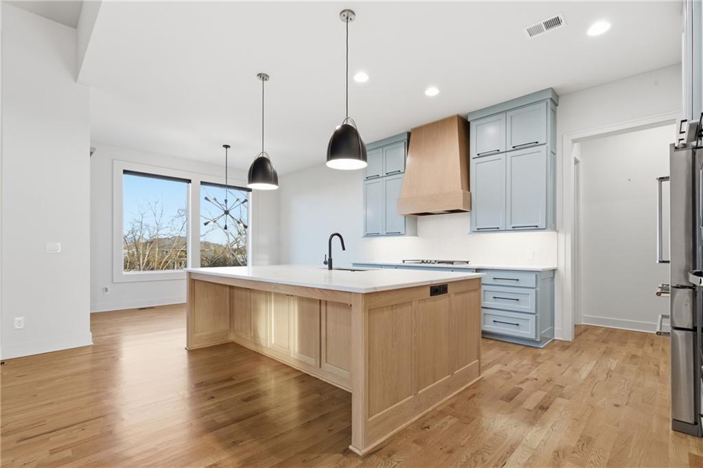 Built in late 2022 by the esteemed Don Julian Builders, this beautifully designed Reverse 1.5 story home is tucked within the premier Bristol Highlands Villas—where maintenance-provided living meets the peace and privacy of rolling hills and protected green space. Just minutes from Shawnee Mission Park, scenic trails and lakes, Lenexa City Center, dining, shopping, De Soto schools, and highway access—yet perfectly secluded—this home truly offers the best of both worlds. Thoughtfully designed for main-level living, the primary suite is a private retreat featuring separate vanities, luxurious soaking tub, walk-in shower with bench, and a spacious walk-in closet with direct access to the laundry room . A stylish powder room for guests and a dedicated office with double doors add both function and flexibility upstairs. The great room features custom built-ins, gas fireplace, and a seamless flow to the covered + screened deck overlooking tranquil green space with privacy! The kitchen—designed for entertaining and everyday living, showcases an oversized island with storage and seating, custom cabinetry to ceiling, quartz, and walk-in pantry. All SS appliances stay, including a newer KitchenAid dishwasher and high-end KitchenAid refrigerator! The walkout lower level is ideal for guests and gatherings, featuring a chic wet bar with beverage fridge, built-in microwave, and island. A cozy family room with slider access to the covered patio is perfect for movie night. One bedroom enjoys easy access to a full hall bath, while 2 additional bedrooms share a Jack-and-Jill bathroom with tub—perfect for hosting family & visitors. Features include high-efficiency HVAC, Lennox smart thermostat, ADT security, automatic privacy screens for the patio and deck, automatic blinds throughout, hardwood floors, and a coveted location backing to community green space. Low-maintenance living. High-end finishes. Don’t let this one pass you by—homes like this are truly special.