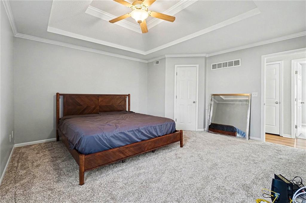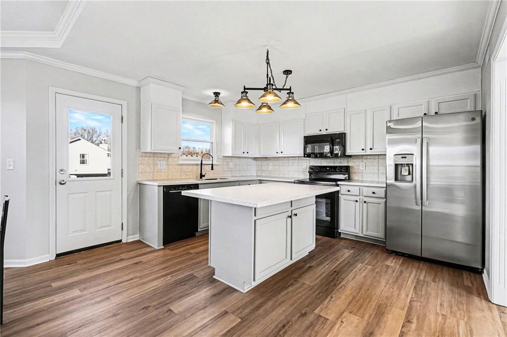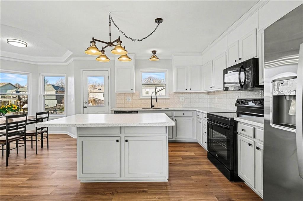 Discover comfort and convenience in this thoughtfully designed 3-bedroom, 2.1-bath home located in the highly sought-after Liberty School District. Step inside to an airy living space filled with natural light, highlighted by soaring vaulted ceilings and a cozy fireplace, an ideal setting for everyday living or hosting guests. The open-concept layout flows seamlessly into the dining area and a beautifully updated kitchen featuring an island with seating, stylish two-tone cabinetry, ample storage, and stone countertops. Step outside to the deck for easy indoor-outdoor entertaining. The main level offers a private primary suite with a tray ceiling, walk-in closet, and updated en-suite bath, along with two additional bedrooms and a full hallway bathroom. The finished walk-out basement includes a convenient half bath and provides flexible space ready to adapt to your lifestyle. Enjoy warm-weather days in the fenced backyard, and take advantage of the prime location near shopping, dining, and quick highway access to downtown Kansas City and KCI Airport. A wonderful opportunity you won’t want to miss!