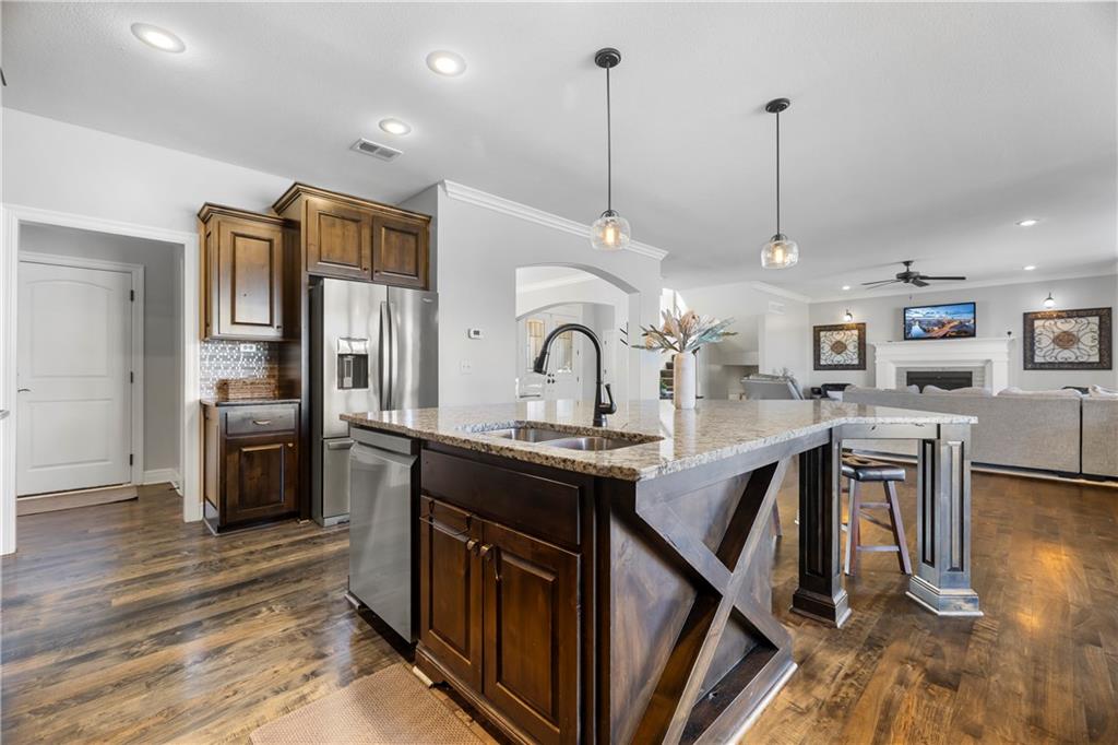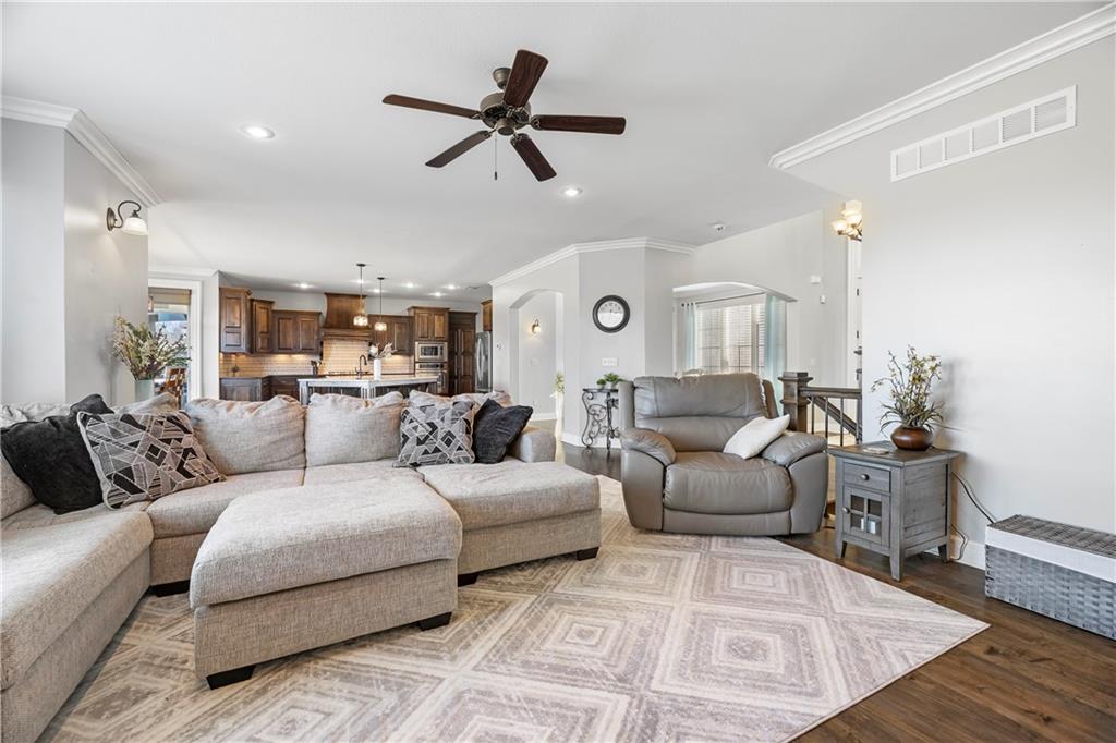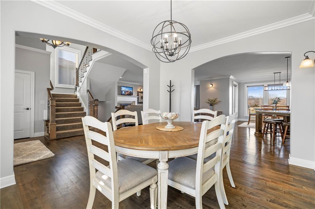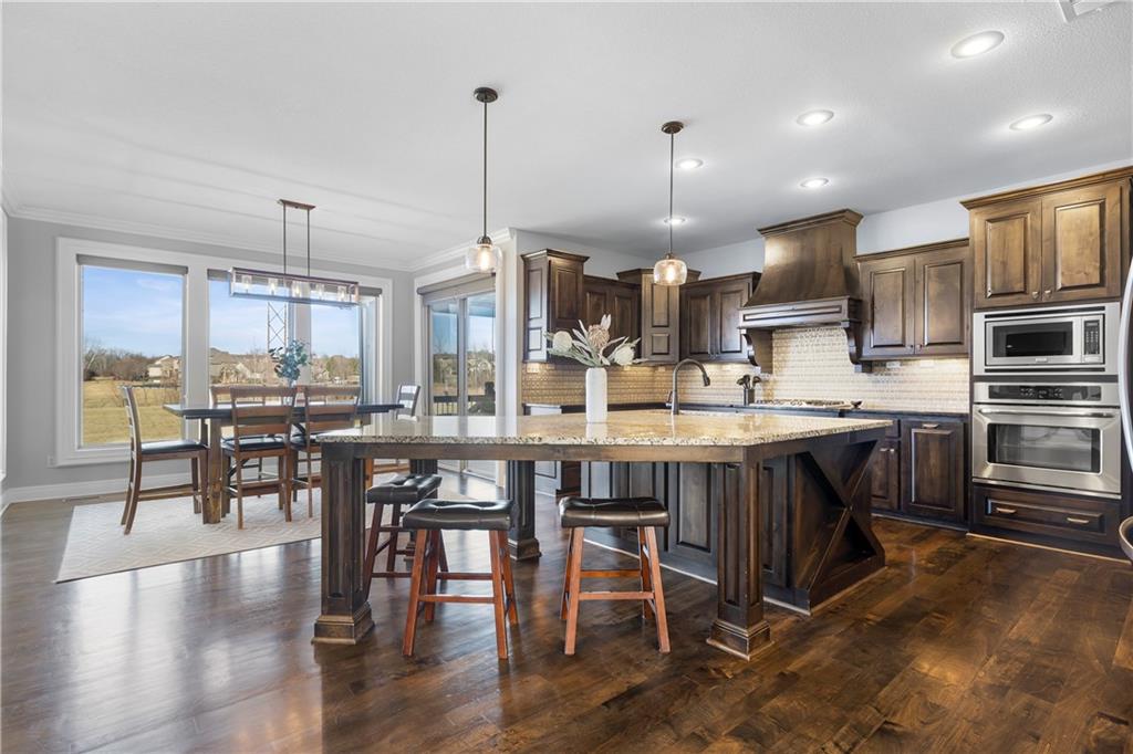 RARE BLUE VALLEY BEAUTY THAT BACKS TO GREENSPACE!!!! Come check out this beautiful two-story home offering over 4600 square feet, 5 bedrooms, 6.5 bathrooms and situated on a daylight lot backing to community GREENSPACE! The 'Hepton' floorplan was thoughtfully designed with expansive living and entertaining areas, a huge kitchen island plus a butler pantry. All bedrooms feature their own PRIVATE EN-SUITE BATHROOMS and the finished lower level includes a bar and sizeable rec room with potential to add a 6th bedroom if needed. Bonus features include hardwood maple floors, granite tops, multi zone irrigation and hardwired security system. Conveniently located near Blue Valley West High, Pleasant Ridge Middle and Cedar Hills Elementary.