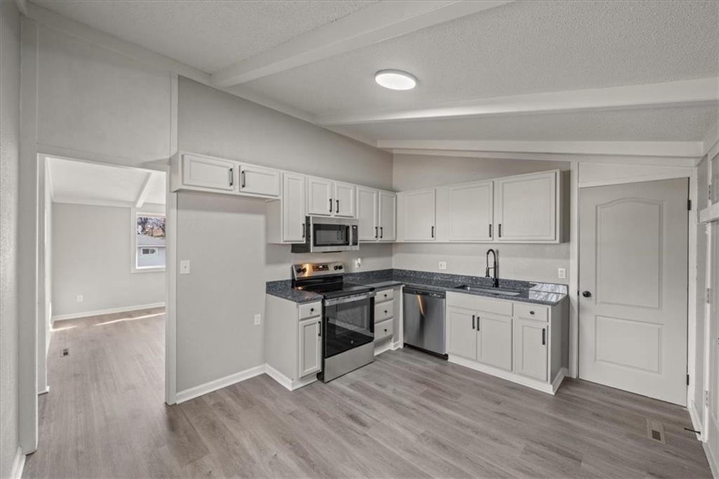 Updated Raised Ranch in the heart of KC! Kitchen features new cabinets, granite countertops, and stainless steel appliances. Large living room with lots of natural light. New paint and flooring throughout the home. New roof and windows.