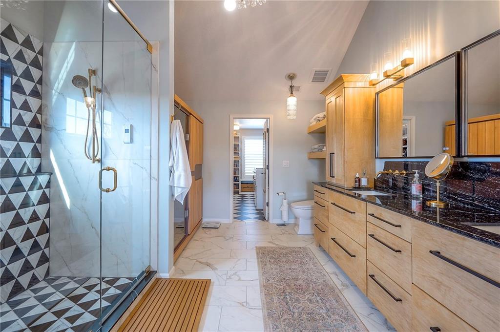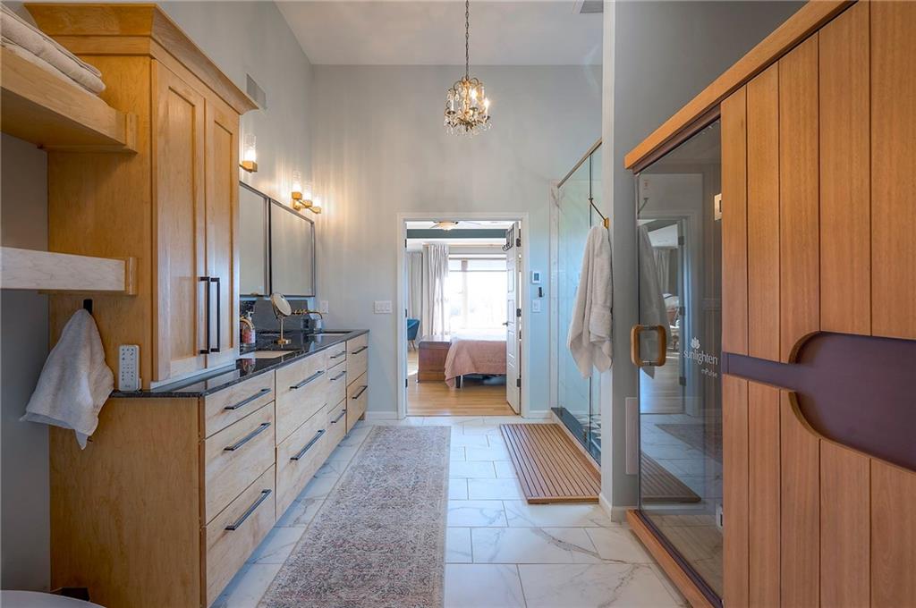 A truly exceptional home, crafted with remarkable attention to detail. Owned by an interior designer, this residence showcases extensive upgrades and thoughtful enhancements throughout. The fully renovated kitchen features a 36" Wolf gas range with a heavy-duty vent hood, a 48" Sub-Zero side-by-side refrigerator, custom storage solutions, a stunning 10' marble island, and wood flooring that extends through the entire home. The great room is anchored by a striking fireplace surrounded in hand-painted marble tile. A custom-built screened porch expands the living space, complete with its own fireplace and radiant heated floors. Step outside to an impressive outdoor kitchen, fire pit, flagstone patio, and a 6-person hot tub, all surrounded by extensive professional landscaping. The newly renovated primary bath offers radiant heated floors, a spacious vanity with optimized storage, a bidet, and illuminated mirrors. The expansive primary walk-in closet features custom ELFA organization and heated tile flooring. The finished lower level includes stained concrete floors, a second kitchen area with an oven, wine fridge, refrigerator, and a large custom solid-wood slab bar. A queen-size Murphy bed adds versatility to the space. Every inch of this home has been thoughtfully designed and impeccably maintained. Prepare to be truly impressed.