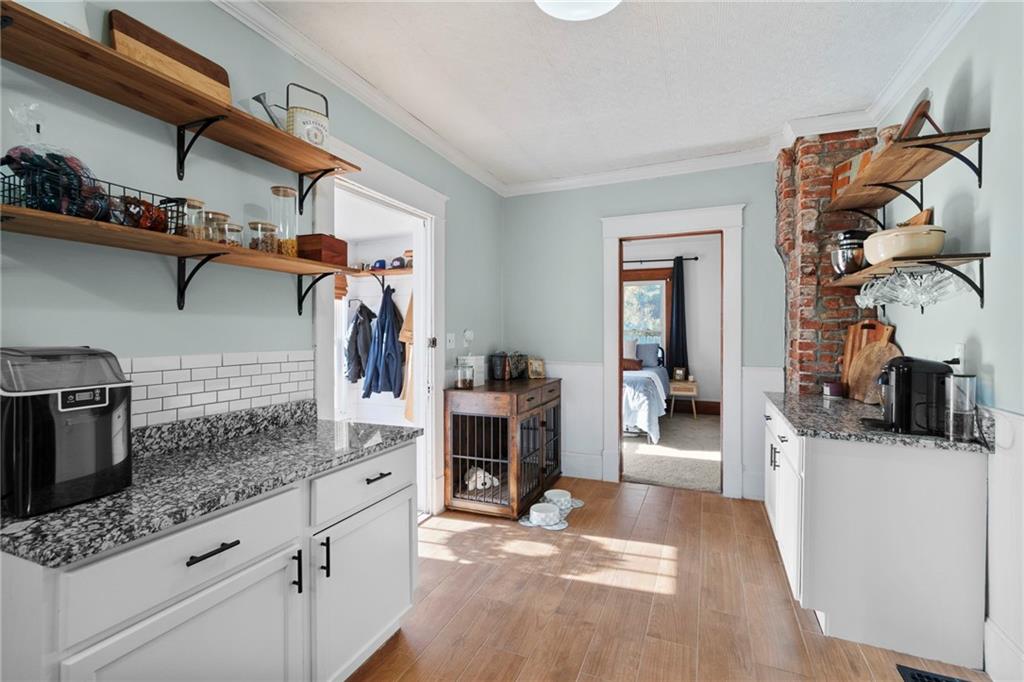 Timeless character meets modern comfort in this beautifully preserved 1923 Craftsman bungalow, rich with the charm and integrity that define homes of this period. From the moment you step inside, you’ll appreciate the stunning original woodwork, including crown molding, built-ins, classic colonnades, heavy five-panel wood doors, and a charming window seat in the formal dining room. Gorgeous wood floors flow throughout the main living spaces, adding warmth and authenticity. The main floor offers two bedrooms, one full bathroom, a formal dining room, and a functional mudroom with laundry. The updated kitchen provides modern convenience while remaining in harmony with the home’s historic character. Upstairs, you’ll find a third bedroom and a full bathroom, creating a versatile space that would make a wonderful primary suite, private retreat, or bonus room. The enclosed front porch is filled with natural light from sunny windows on all sides, making it an ideal sunroom, plant room, or additional living space. Outdoor living continues with a new rear deck, perfect for relaxing or entertaining. A detached two-car garage and carport provide ample parking and storage. A new roof installed in 2023 adds peace of mind. This special home is a rare opportunity to own a true Craftsman bungalow where original details have been lovingly maintained while modern updates enhance everyday living.