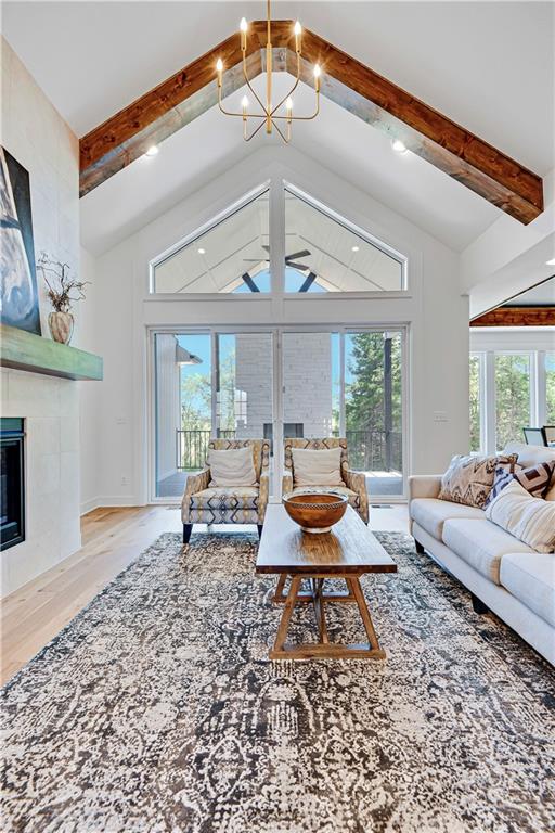 Experience refined luxury in the stunning Bayberry by JFE Construction. From the moment you enter through the impressive 8’ double front doors, you are welcomed by soaring ceilings, dramatic wood beams, and walls of windows that flood the great room with natural light. Expansive sliding doors open to a covered deck with a stone fireplace, perfectly positioned to capture serene greenspace views—an ideal setting for both relaxation and entertaining. The designer kitchen is thoughtfully curated with a large quartz island, stainless steel appliances, rich wood flooring, and an oversized walk-in butler’s pantry, offering both beauty and functionality. The primary suite is a private retreat, featuring a freestanding soaking tub, double vanity, zero-entry shower, and a spacious walk-in closet. A second main-level bedroom or office provides flexible living options. The finished lower level extends the living space with a family room, bar area, game space, two additional bedrooms, and a full bath—perfect for hosting guests. Throughout the home, you’ll find exquisite trim details, wood accent walls, striking black accents, and architectural elements that elevate every space. Located in Canyon Creek Forest, a luxury maintenance-provided, free-standing villa community. Lawn care and snow removal are included, allowing for a truly carefree lifestyle while enjoying all the amenities Lenexa has to offer. Estimated completion April 2026. Still time to make select design choices to personalize this exceptional home. Photos are of a former model and may include upgrades not included in the price.