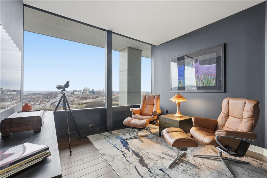 Photos coming soon. Fully Furnished!!! Breathtaking views from this 15th floor North facing Condominium at One-Park Place! Floor to ceiling windows provide the most incredible views that you will find anywhere in Kansas City. Condo features open floor plan designer finishes throughout, updated lighting and kitchen hardware, hardwood floors, Chef's kitchen with expansive island that is great for entertaining, Two generously sized bedrooms with on-suite bathrooms and walk-in closets, addition half bath, den is perfect for an office/study, media room or play room, remote controlled blackout shades on all windows. Resort style amctenities include 24/7 concierge, indoor an outdoor salt water pools and hot tubs, Cigar lounge, wine cellar with wine tasting room, golf simulator, fitness center with yoga room, steam rooms, massage therapy suite, event space with full kitchen, game room, billiards table, plaza level outdoor space with putting green, private dog park, outdoor grilling and entertaining spaces. Furnishing include all furniture items, area rugs and televisions.