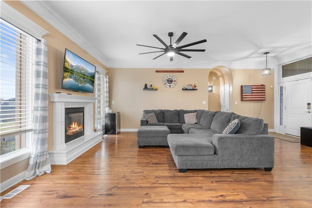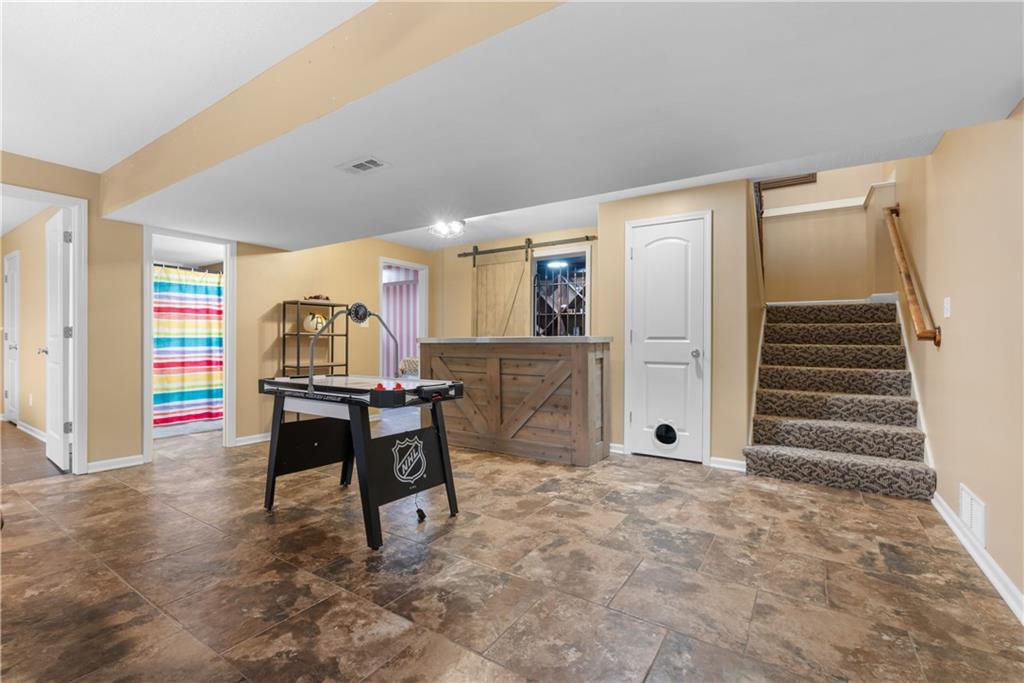 This 4 bedroom, 2.5 bath reverse ranch offers the perfect blend of open-concept living and thoughtful upgrades throughout. The main level features a spacious layout ideal for gatherings, highlighted by granite countertops, a large laundry room on the main floor, and a private primary suite. The primary bath is a true retreat with heated floors, whirlpool tub, a large walk-in closet and shower designed for relaxation. The finished walkout basement expands your living space with three additional bedrooms, a Jack & Jill bathroom, plenty of storage, a bar, and an impressive wine cellar perfect for hosting or unwinding at home. Step outside to an entertainer’s dream backyard featuring a large patio with a built-in gas fireplace and cooktop, ideal for BBQs and evening get-togethers. The maintenance-free composite deck adds even more outdoor living space, and for those chilly Missouri nights, enjoy the hot tub that stays with the home. Located in the welcoming Rosehill neighborhood, residents enjoy access to a community pool and a great sense of community. This home checks every box for comfort, function, and lifestyle don’t miss your opportunity to make it yours.
