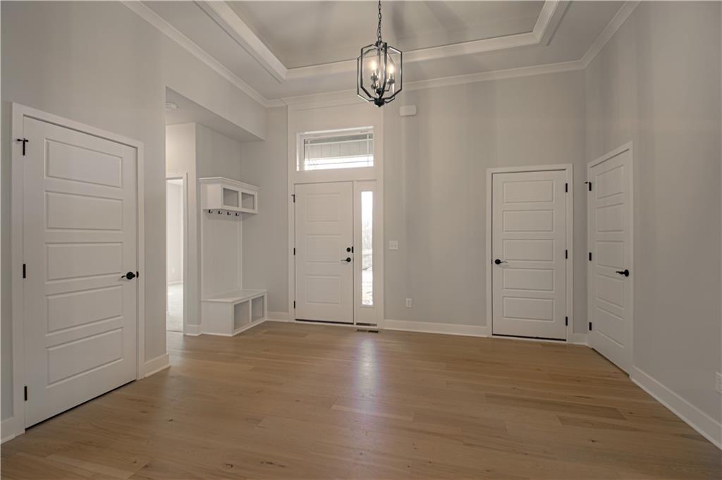 Discover the Richmond by Hoffmann Custom Homes, a beautifully crafted true ranch designed for modern comfort and easy, everyday living. From the moment you enter, you’re welcomed by an impressive entryway that opens into a generous great room highlighted by soaring ceilings and an inviting, open layout. The kitchen seamlessly connects to the main living space and showcases dark engineered hardwood flooring, soft white enameled cabinetry, updated contemporary lighting, and a large center island accented with light granite—perfect for gathering and entertaining. Just beyond the dining area, a covered deck extends your living space outdoors, ideal for relaxing or hosting. This home is built with both strength and energy efficiency in mind. It is pre-wired for future solar panels, includes a dedicated EV charger receptacle, and features additional energy-saving enhancements throughout. The lower level is already stubbed for a future bathroom, allowing the opportunity to expand your living space as your needs grow. This home is currently in the Finishing stages of Construction - Check back in for status updates on the construction of this stunning new build! Note: Pics are of same trim pkg but different decor pkg.