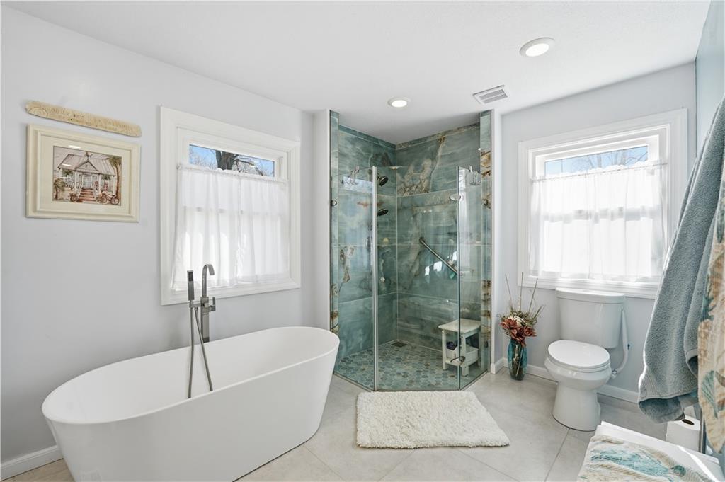PRICED TO SELL! Step into your own beach-inspired oasis in Leavenworth, KS. This cheerful yellow and blue home offers a light, coastal feel paired with thoughtful updates throughout. The remodeled 2-bedroom, 1.5-bath layout includes a spa-like primary suite featuring a stunning tile shower, standalone soaking tub, large vanity, tile floors, and a walk-in closet, your personal retreat at the end of the day. The living room is filled with natural light from a large picture window overlooking the backyard and peaceful creek beyond. The updated kitchen boasts a modern design with an island, generous counter space, and plenty of room for cooking. A second main-level bedroom is currently being used as an additional dining space, offering flexibility to suit your lifestyle. Downstairs, you’ll find an open, insulated basement that’s already being used as a living area and is ready for a new owner to add finishing touches. Unique dual garage access includes one garage on the main level and another at the basement level- perfect for storage, hobbies, or extra parking.