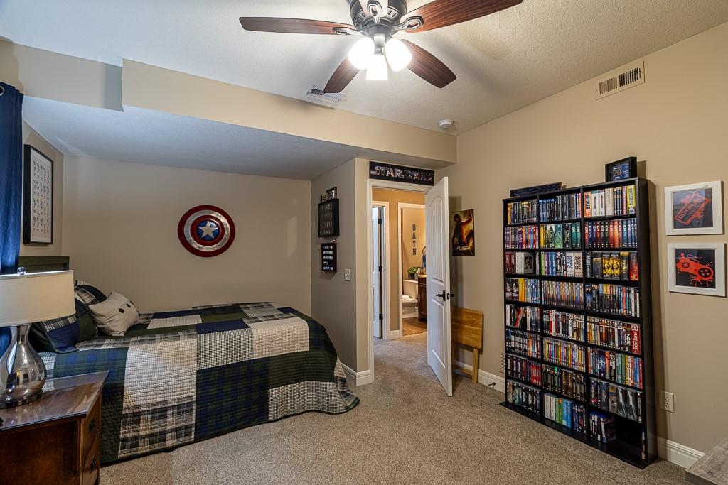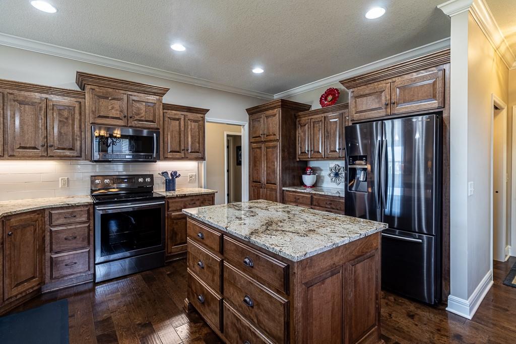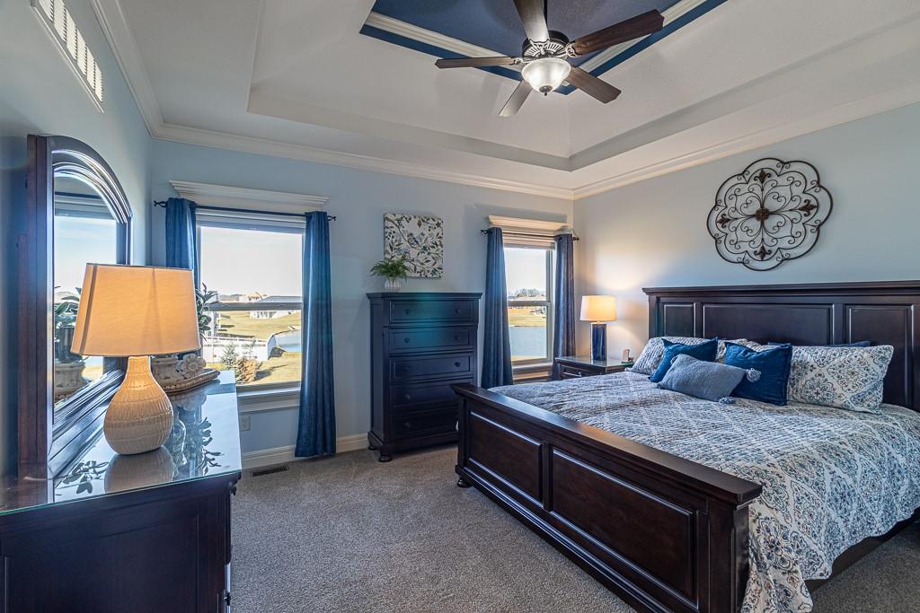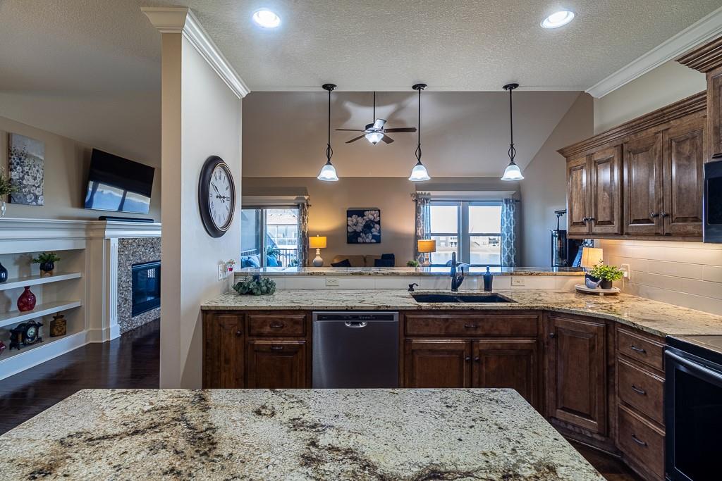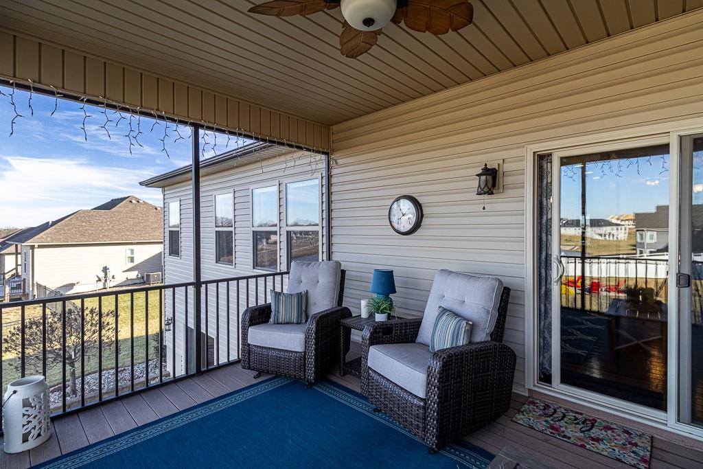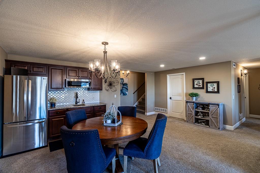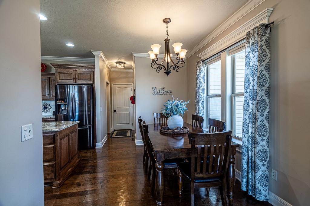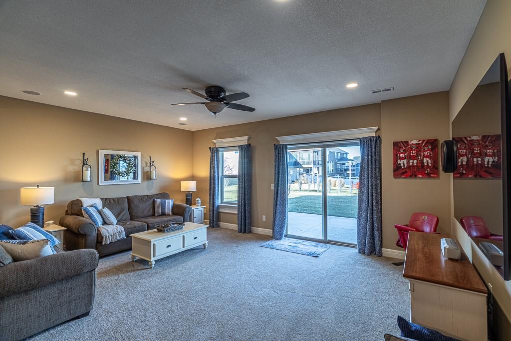 Attention Greystone Buyers!! This immaculate 4 bedroom reverse 1 1/2 story has it all! Beautifully maintained, custom built one owner home features warm wood flooring, upgraded kitchen with large island, stained cabinetry with roll out shelving, deep drawers, pantry and stainless appliances, including refrigerator. The open floor plan is ideal for entertaining or everyday living. The spacious great room is highlighted by an attractive gas fireplace and built-in book cases, tall ceiling and access to the screened deck. Be sure to check out the view of the association pond and common grounds from the deck and patio. The primary suite includes a large bedroom plus walk-in closet, double vanity and attractive tiled shower. Also conveniently located on the main level is the 2nd bedroom, laundry room (washer & dryer stay) and a 3 car attached garage. The tastefully finished lower level boasts a well lighted family room that includes a kitchenette, 2 additional bedrooms, 3/4 bath and storage room. Easy access to the expanded patio from the family room for additional enjoyment. Additional improvements & upgrades: Garage floor & front stoop epoxy finish, humidifier on the furnace, lawn irrigation system, water softener, garage cabinets added, professional landscaping. Better check this one out before it's sold! (portable shelving in storage room, slat tool racks & refrigerator in garage do not stay)