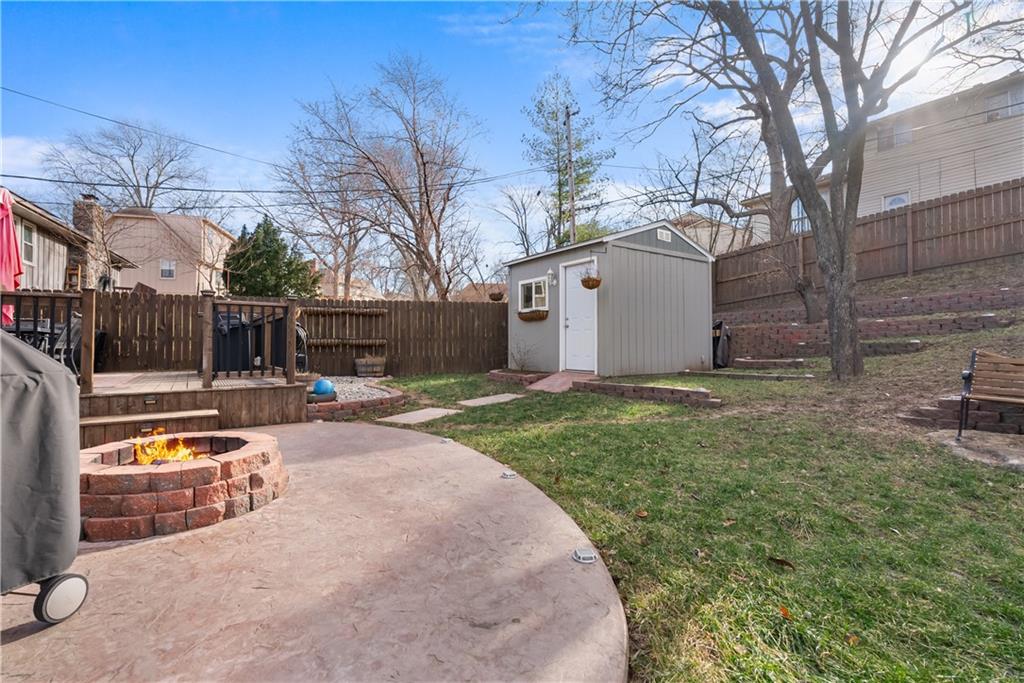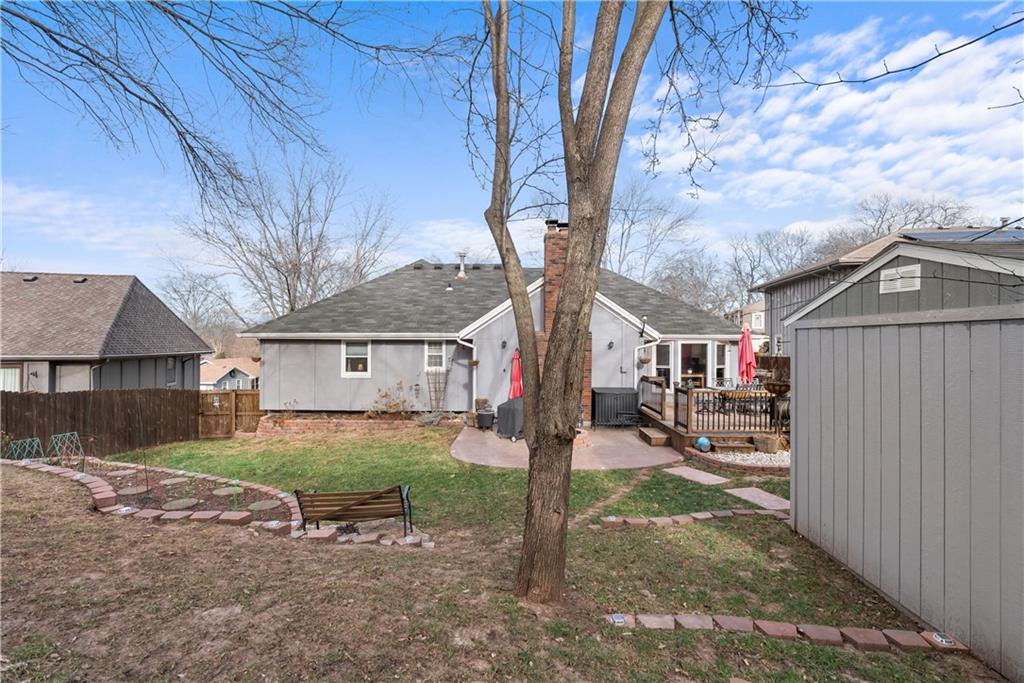 Welcome home to this very well loved and maintained home close to red bridge shops and south KC. It’s the entertainers dream featuring one of the best back lots around. Large deck, stamped concrete and tiered stone with outdoor lighting and workshop shed. Great floor plan inside with updated kitchen, fresh paint, tons of wood character and large primary suite. Downstairs is stocked with a custom built in bar, perfect for theatre and second living room options and stubbed and ready for a third full bathroom and workout room. Garage has an additional work shop built in.