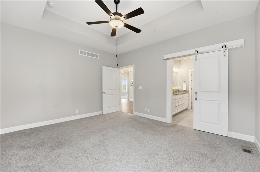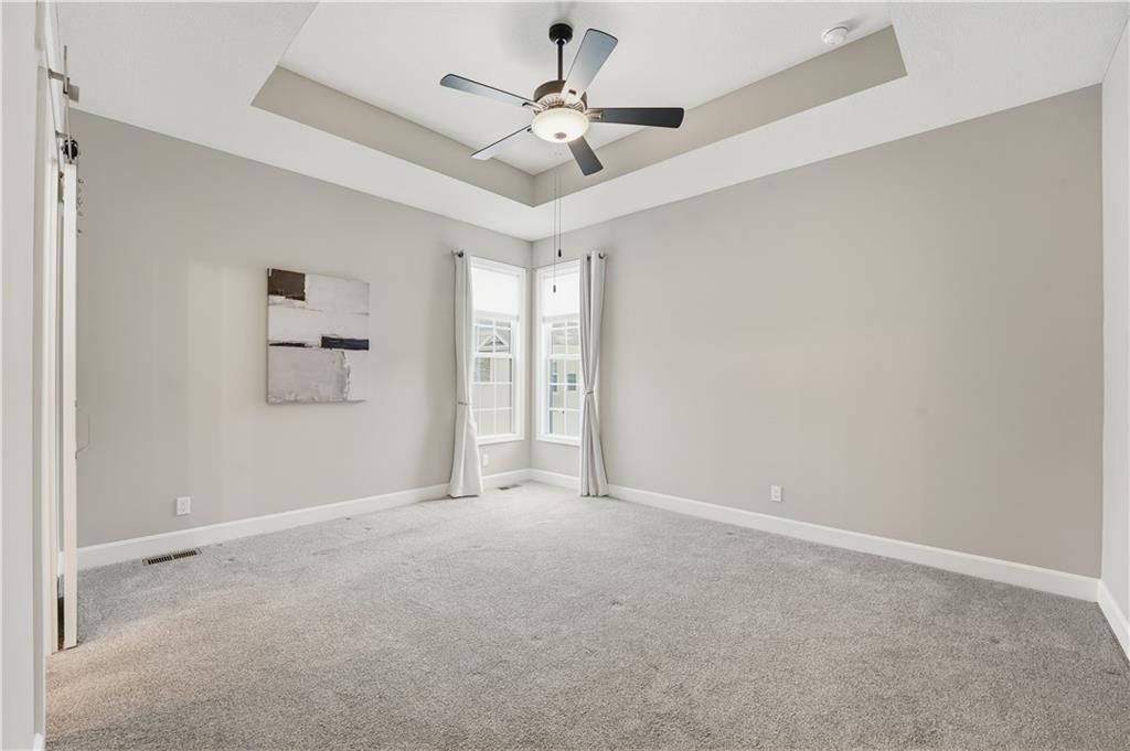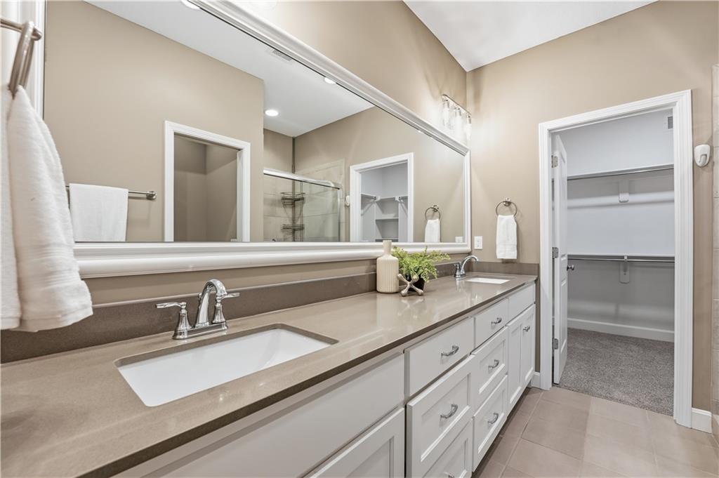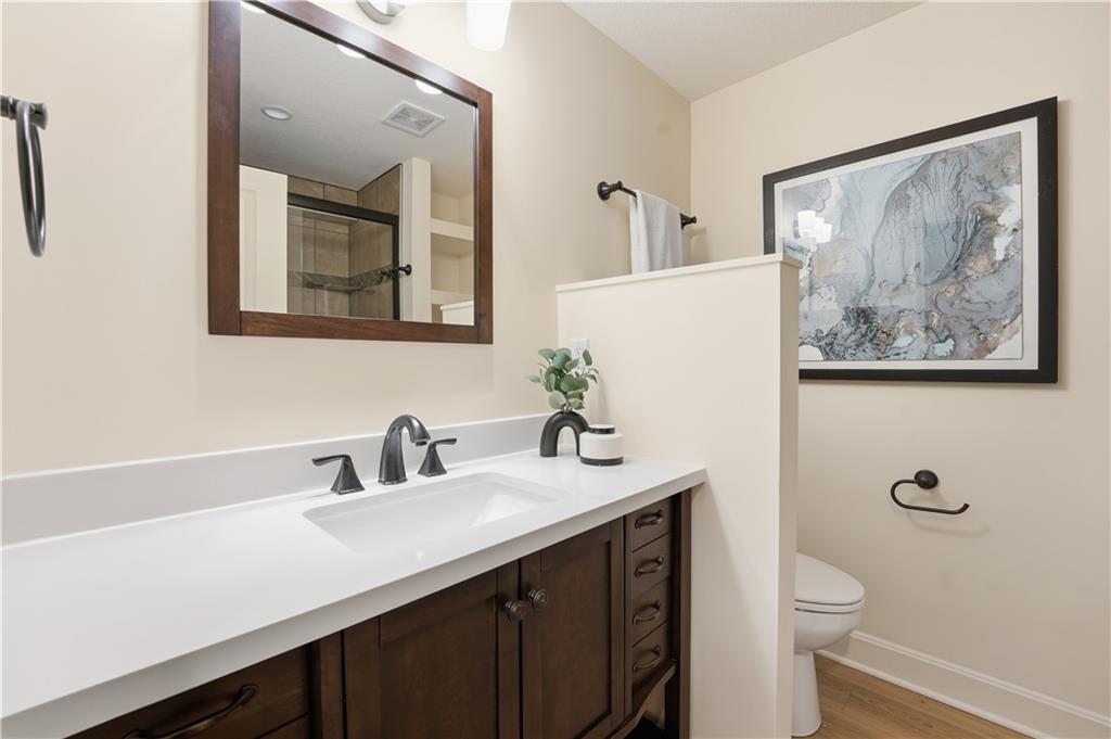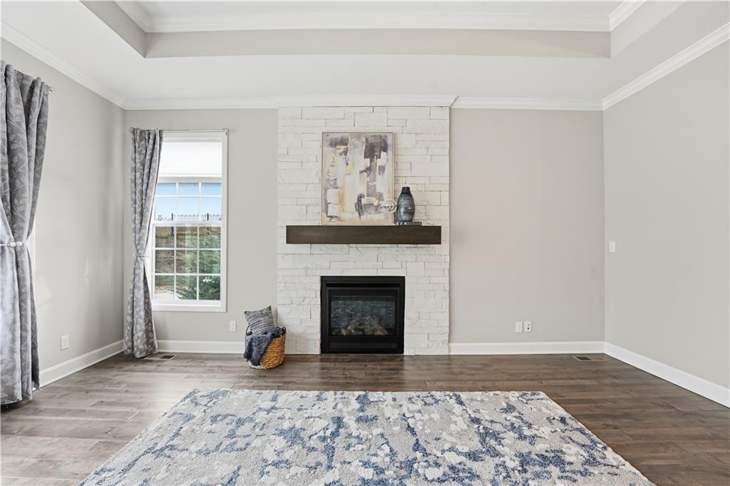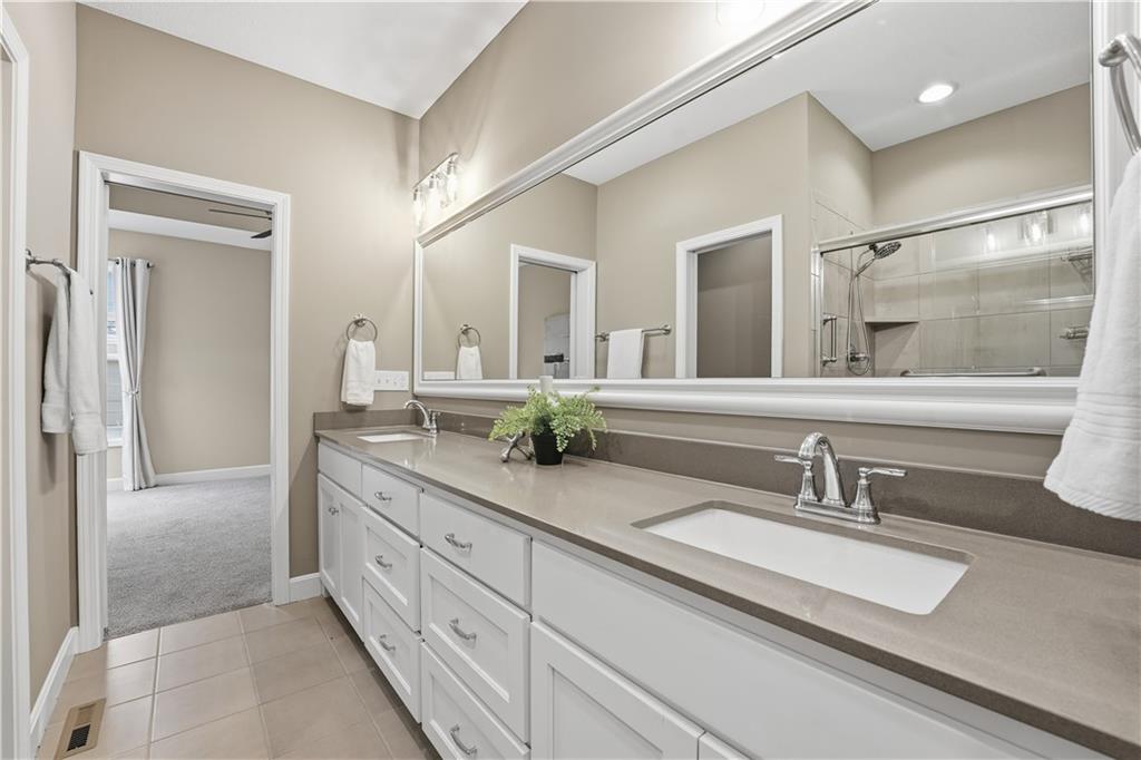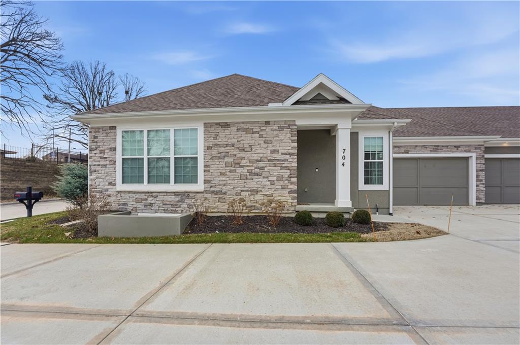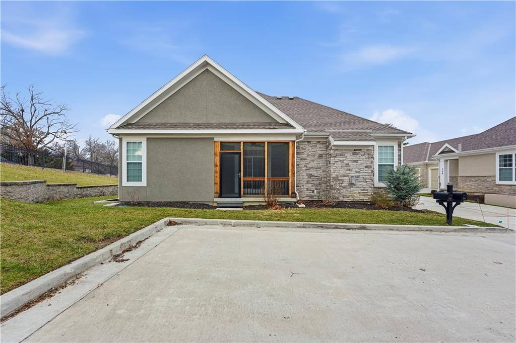 Discover a highly sought-after gated community right in the heart of South Kansas City! This stunning Lambie twin villa has three bedrooms and three full baths. The open concept floor plan invites you into the cozy great room, complete with a beautiful stone fireplace, custom window treatments and ceiling fan. The home showcases hardwood floors throughout the main living areas, tile floors in the bathrooms and laundry, plus solid surface countertops in baths. The elegant chef's kitchen is equipped with quartz countertops, a custom backsplash, a pantry with roll-out shelves, and new stainless steel appliances. The impressive primary suite boasts a large shower, double vanity, and walk-in closet. A sunny dining room opens to a screened-in porch, ideal for savoring your morning coffee. The finished basement, completed just two years ago, includes a recreation room, third bedroom, third full bath, and ample storage space. No detail has been overlooked in this picture-perfect home!
