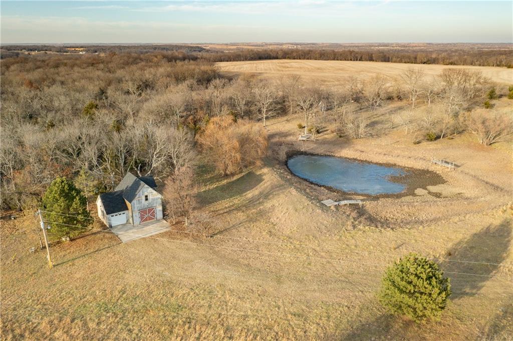 Located just south of Pomona, KS in Franklin County, this 40± acre tract offers rolling pasture, quality wildlife habitat, and a well-maintained carriage house. The property has been grazed in recent years and features two primary ponds that could be combined into a larger pond with minimal work, plus an additional wet-weather cattle pond on the south end. Timber is well positioned with a 3–4 acre block in the northwest corner behind the carriage house, complete with a draw leading into the pond system. This area has produced trail-camera photos of mature whitetail bucks and turkeys. A second 5+ acre block of mixed hardwoods and cedars sits on the southern portion of the farm and offers excellent bedding, roosting, and habitat potential. Scattered cedars throughout the pasture provide additional cover. The southwest-facing timber is ideal for TSI and habitat improvement. A 1,360 sq ft carriage house adds immediate utility, featuring approximately 710 sq ft of garage/shop space on the lower level and 650 sq ft of finished living space upstairs. A new roof was installed in Fall 2025, along with siding and door frame repairs. The living space includes an AC floor unit, propane stove for heat, a working security system, and a rudimentary toilet with plumbing ready to be completed. A water pump system allows water use in the structure. Electricity is on site with a meter installed, along with a 500-gallon propane tank. Furniture, beds, mini fridge, microwave, AC unit, propane stove, drinking water system, riding mower, shop supplies, and building materials all convey with the sale. Conveniently located just off I-35, approximately one hour from Overland Park, 10 miles from Ottawa, and a short drive to Pomona Lake and Melvern Lake. Ideal for grazing, a weekend retreat, or developing into a strong recreational and hunting property.