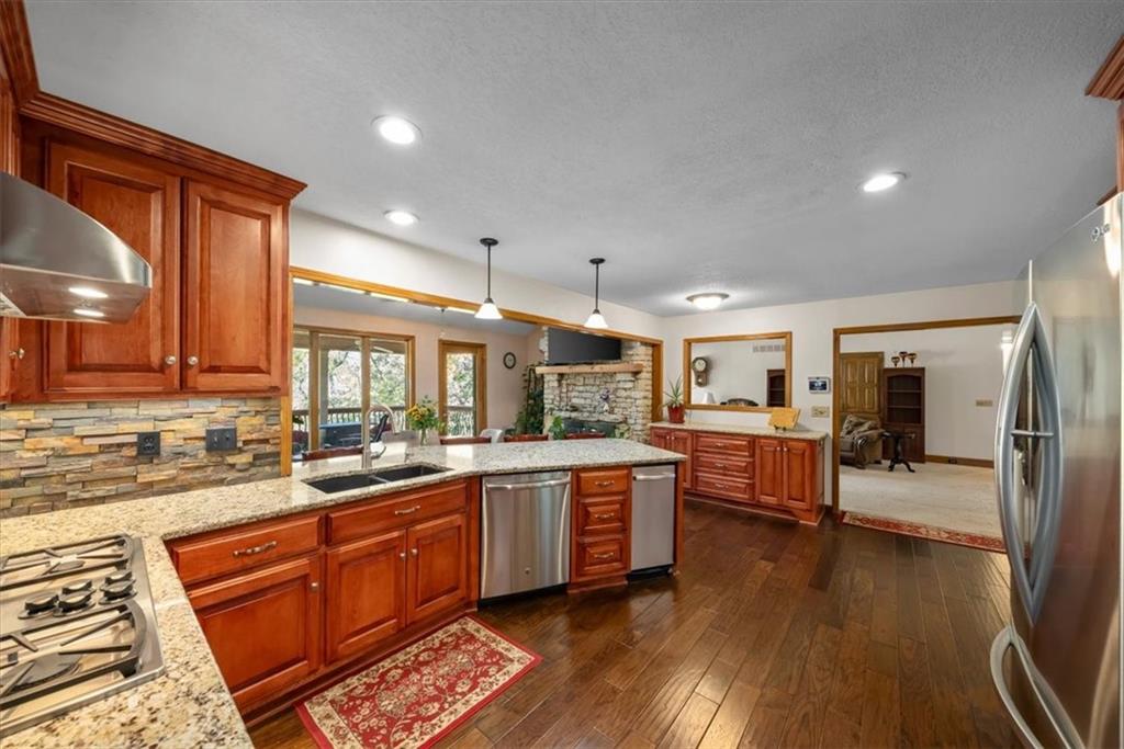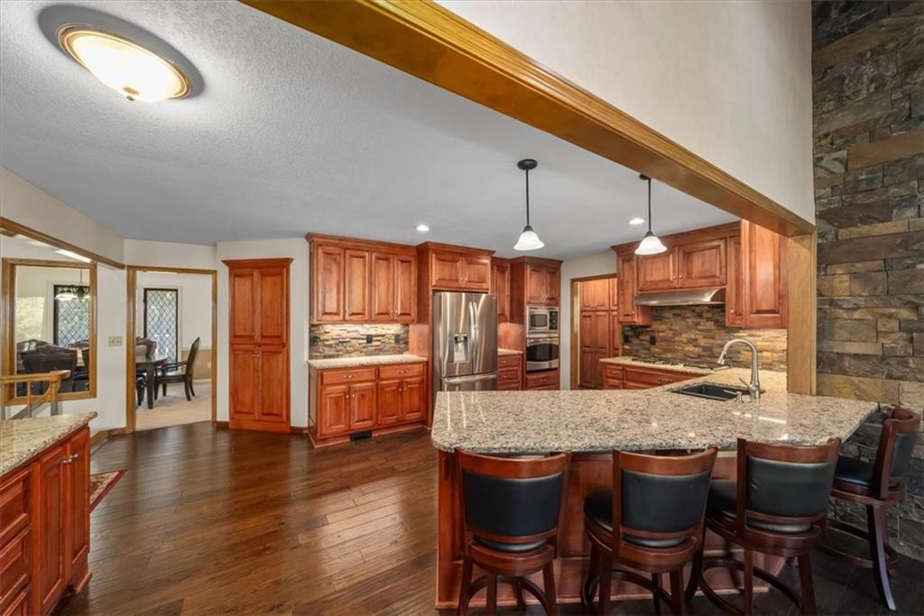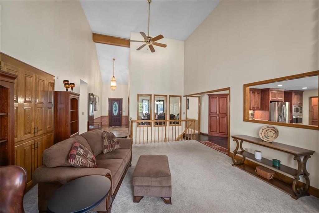 Tucked away at the end of a peaceful cul-de-sac near Lake Lotawana, this exceptional 4-bedroom, 5-bath home offers privacy, space, and thoughtful design with over 4000 finished sqft on over 2 acres. A true retreat, the property features a serene back deck overlooking the expansive acreage—perfect for morning coffee, entertaining, or simply enjoying the quiet setting. Inside, you’ll find a flexible layout with a bonus office ideal for working from home. The primary wing is a standout, featuring dual bathrooms, two walk-in closets, and a private laundry room for ultimate convenience. Car enthusiasts and hobbyists will love the five-car garage setup, including three front-facing garages and two additional garages tucked behind the home—perfect for storage, recreational vehicles, or workshop space. Located on a quiet street in a highly desirable Lake Lotawana area of Lee’s Summit, this home blends luxury, function, and peaceful country living just minutes from city amenities.