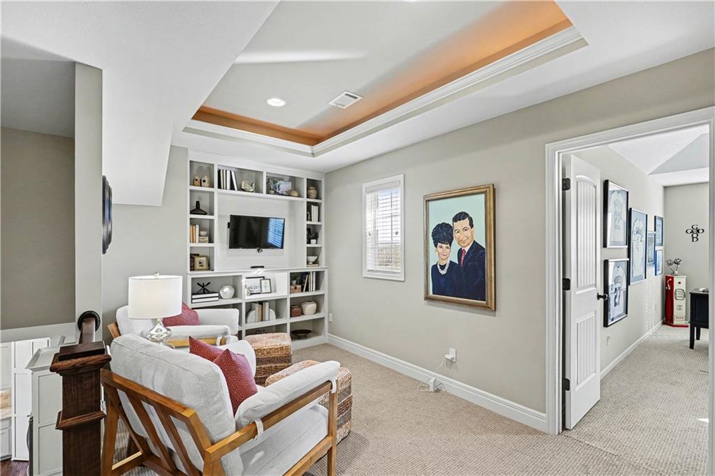 Welcome to 9158 W 178th Terrace, a beautifully maintained Emery Expanded 1.5-story home by James Engle Custom Homes, located on a quiet lot with pond views in the desirable Arbor View subdivision. This elegant home offers 6 bedrooms, 4.5 baths, and a 3-car garage, with an open, light-filled layout and upscale finishes throughout. The gourmet kitchen features granite countertops, a large island, stainless steel appliances, and a walk-in pantry. The main level includes a private primary suite with a spa-like bath and direct access to the laundry room, plus a flexible bedroom or office. Enjoy outdoor living on the covered patio with a fireplace overlooking the beautifully landscaped yard. Upstairs offers spacious bedrooms and a loft, while the finished lower level includes a recreation area, a sixth bedroom with egress, a full bath, and ample storage. Premium upgrades, including trim work, whole-home audio, and landscaping, make this move-in-ready home a must-see in prime Overland Park!