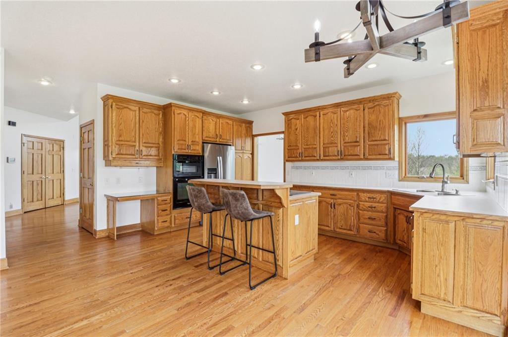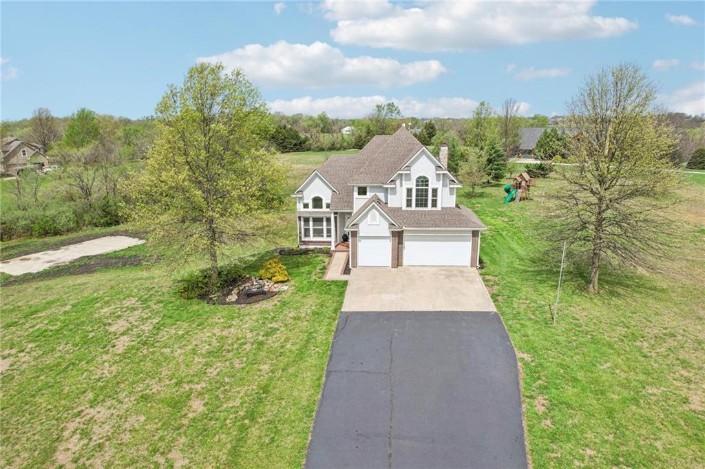 Welcome to this spacious 1.5 story home, set on 5.7 acres and nestled in the highly sought after Bear Lake community and Basehor-Linwood school district. From the moment you step inside the house, you’ll appreciate the vaulted ceilings and large windows that create an open, airy feel throughout the entry, living and dining spaces. The thoughtfully designed floor plan flows seamlessly into a kitchen focused on function and featuring a center island perfect for everyday living, gathering, and entertaining. Downstairs, the finished walkout basement offers additional living space with plenty of flexibility for a second living area, home office, or recreation space. Step outside and enjoy the peaceful surroundings, with access to a 60 acre fishing lake and an 80 acre wildlife preserve complete with scenic walking trails. This properly truly offers the perfect balance of comfort, space and nature. Enjoy the peace of mind that comes with major updates already completed. Fresh interior paint in 2026 gives the home a bright, refreshed feel, while 2025 brought key exterior and system upgrades including a new front door, two sliding doors, water softener, and a resurfaced driveway. With a newer water heater, AC unit and furnace(2023), the heavy lifting has been done. Outside, a 30x40 concrete pad with electrical access offers endless possibilities for a shop, hobby space, or additional storage.