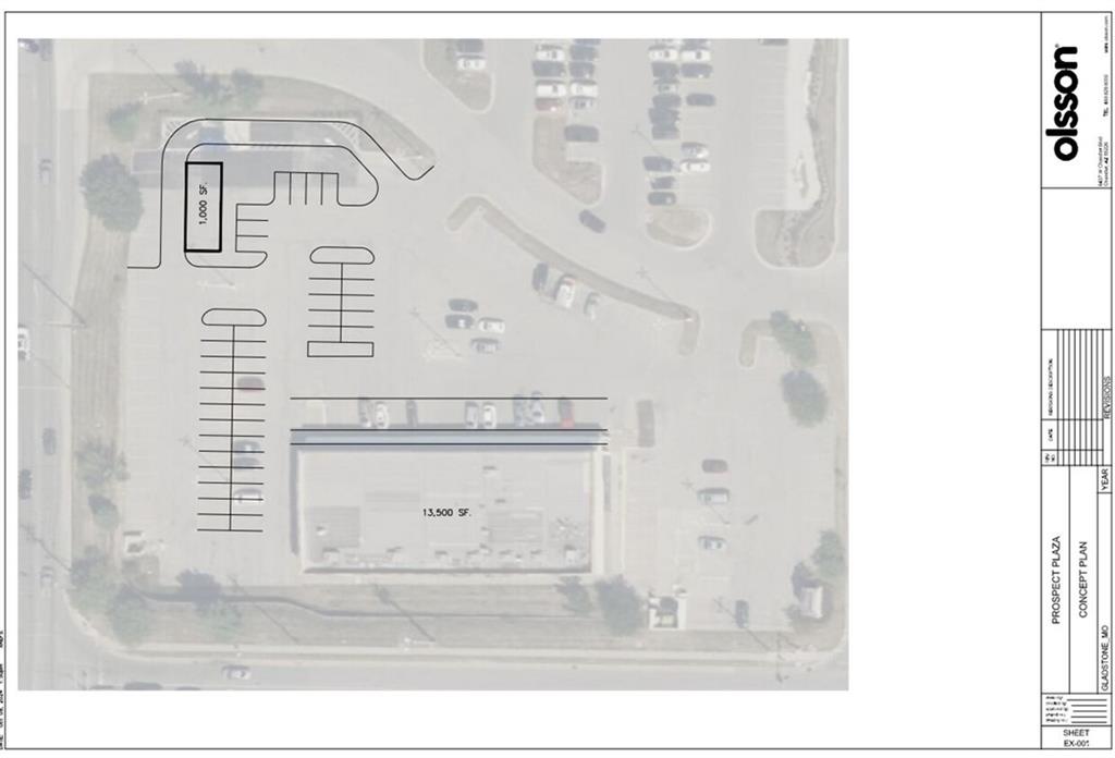 Prospect Plaza, Gladstone, MO **Prime Commercial Build To Suite available! **Key Features:** - **Prime Location:** Situated in the bustling heart of Gladstone, Prospect Plaza is a well-known retail destination, ensuring high foot traffic and excellent exposure for your business. - **Parking:** Ample parking is available for both customers and employees, ensuring convenience and ease of access. - **Accessibility:** The plaza is easily accessible from major highways and public transportation routes, making it a convenient destination for your clientele. - **Surrounding Businesses:** Benefit from the synergy of being in a vibrant commercial community. Current tenants include popular establishments such as Hunan Garden (Chinese cuisine), Tasty Baghdad Restaurant (Mediterranean cuisine), Regional Finance (loan agency), BobaRun (tea, coffee & bakery), and North Kansas City Adult Education.