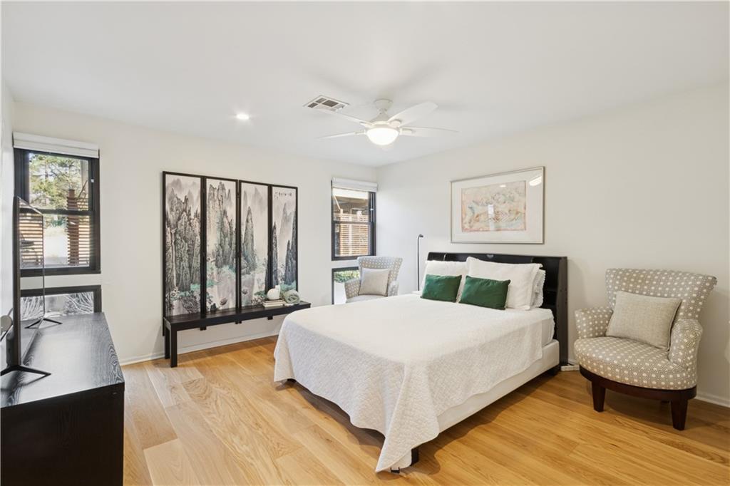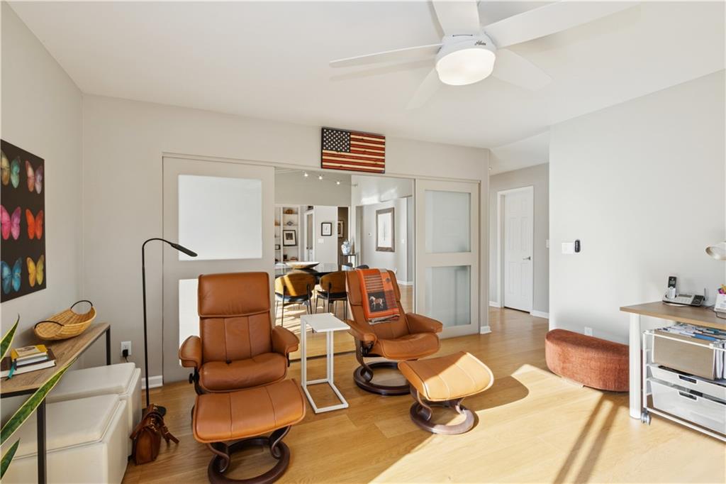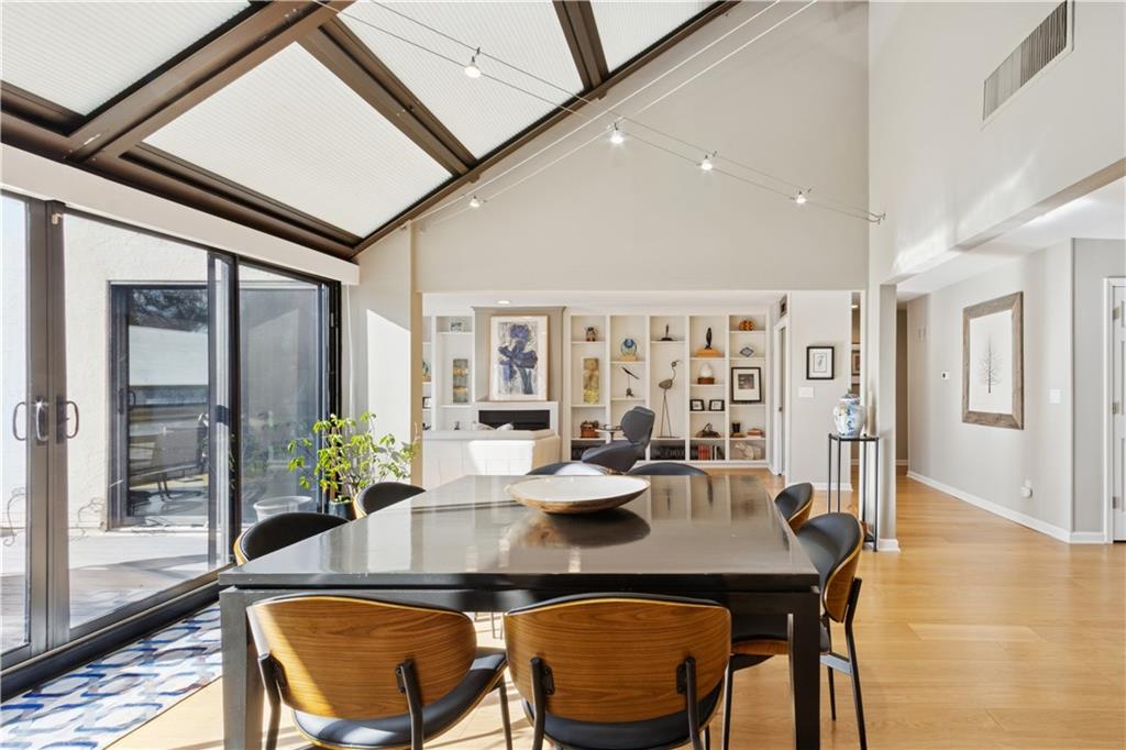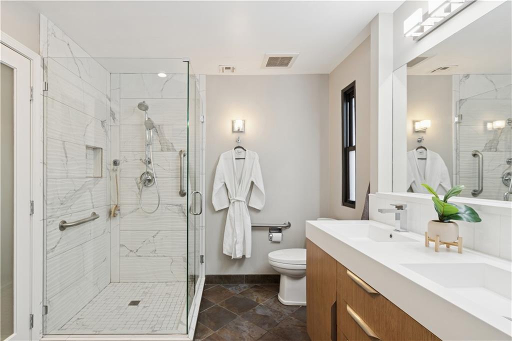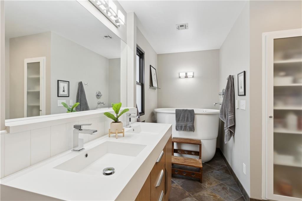 Arguably the best unit in the development as the only one with a straight walk with no stairs from parking to unit & one of only two with its own private entrance! This private, gated community is conveniently nestled between the Country Club Plaza, Kemper Museum, Nelson Atkins Museum and is only a block away from the new Main St streetcar extension! Only 19 units in this contemporary development designed by Moshe Safdie (Crystal Bridges, Kauffman Center) with inground swimming pool and extensive landscaping. This gorgeous unit has a classically contemporary, open floor plan with a ton of thoughtful updates and timeless details throughout. Both the spacious dining room and living room with gas fireplace and wall of bookshelves provide access to the extra large, newly redone Trex deck. You'll love the ample outdoor living/entertaining space that gives you a view of both the pool and the Country Club Plaza! Relax in the primary suite offering both bedroom and office/reading space and loads of closet space! The spa-like primary bathroom has been recently remodeled with a Japanese soaker tub, heated floors, double vanity and walk in shower. The bright secondary bedroom has a walk-in closet, bonus double closet and recently remodeled full bath. And the kitchen- wow! New backsplash and counters, coffee bar, 2 pull out pantries and convenient eat-in space! This spacious unit also gives you a versatile bonus space with sliding doors that open to the dining area and another access point to the deck- use as den, additional office space or 3rd bedroom! So much new in the last 5 years- flooring, all bathrooms, HVAC (1 yr) H2O heater (2yrs) shades, kitchen appliances and more! You'll also find convenient storage space throughout the unit- from the extra space in the utility room to the walk in closet/pantry in the dining room, coat closet in entry, bar closet in living room and linen closet by bathrooms. Extra storage space and 2 covered parking spaces included!