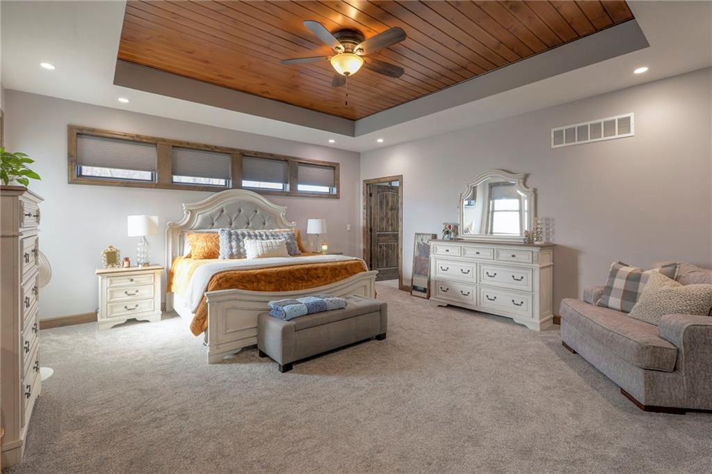 5835 sq foot of bliss and beauty on .85 of an acre. Main level has 2160 sqft of a wide open living room and kitchen area with a 1/2 bathroom a walk in pantry and main floor laundry room. The master bedroom is absolutely gorgeous with a huge master bathroom and walk in closet. The master bathroom boasts a custom corner jetted tub along with his and hers sinks and a great big walk in shower to escape the daily routine in with a bench, rain shower head, a hand wand and 4 body heads with dual faucets. A beautiful oversized staircase leads you up to the second level of 1515 sqft consisting of a loft setting area overlooking the main floor living room. The second level also includes two identical large bedrooms with walk in closets and a full oversized bathroom. The walkout basement has 2160 sqft of a rec/living room with a 1/2 bathroom, a mechanical room with a 100 gallon hot water heater and HVAC equipment for the main floor and a 200 amp breaker box. A brick veneer hallway leads to the basement in-law suite with a full bathroom and walk in closet. To finish off the basement there is a fitness room for the active fit person. Then there is the attached garage with a 10” concrete zero entry floor to handle anything. No steps to traverse to get into the kitchen, floor is all one level. The garage is 48’ deep by 56’ wide, 2688 sqft. It has 3-12’x11’ overhead doors 200 amp electrical service and scissor trusses for added ceiling height. The 56’ loft over a full bathroom, insulated work room, and insulated storage room makes storage a snap. A full glass 6’x8’ overhead door between the garage and kitchen makes it unique. A 6” thick concrete driveway leads to all of this. A 26’x18’ composite deck with two tier steps for morning coffee or evening entertainment leads to a stamped concrete patio off the basement entry door. Built with 2x6 exterior walls and TJI silent floor joists and a truss roof. All electric with propane island cooktop and propane heat.