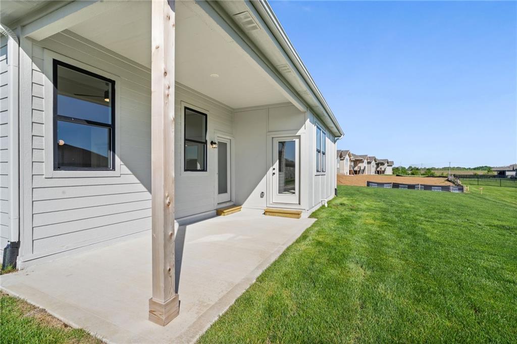 Lot 17L Legato. Check out this ENERGY EFFICIENT home with a HERS rating of 51! And in a GOLF COURSE community! Professional Photos and Tour of another but very similar model. Fox Block insulated concrete forms make this home energy efficient from the ground up. Also included are a 95% efficiency furnace and higher than typical wall insulation. This home provides three bedrooms plus a main floor office as well as an oversized garage and an amazing pantry you can load straight from the garage! Open Living Room, Spacious Kitchen and Breakfast Area with quartz counter and Island. Huge walk in pantry. Nice Primary bedroom and Bath Suite. Large walk in closet. Lower Level has a family room, 2 bedrooms, full bath. Tons of storage. HOA provides lawn maintenance (mowing and treatments), maintenance of initial landscaping, sprinkler turn on and turn off, snow removal over two inches, as well as paint, roof and gutters, as needed. Neighborhood pool, play area and basketball and pickleball/tennis courts included as well. Excellent schools, good highway access for easy commute to all parts of the city! 10 minutes to The Legends and 30 to the airport, downtown and Lawrence! Acclaimed Basehor-Linwood Schools!