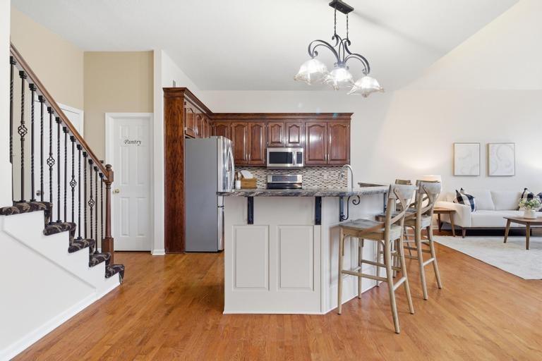 Welcome home to this beautifully maintained, one-owner, two-story residence offering 5 bedrooms, 4 full and 1 half baths, offering timeless design throughout. From the moment you enter, the elegant curved staircase in the grand 2 story entry sets the tone, complemented by a rare dual-staircase layout that adds both function and architectural interest. The main level boasts an open floor plan with living room flowing into formal dining space, plus an office with double-door entry, and centrally located half bath. The expansive kitchen features fresh paint, large center island, generous pantry, and ample cabinetry—perfect for everyday living and entertaining alike. The Primary suite is located on the second floor with a double-door entry. Thoughtful updates include a refreshed primary bath, creating a serene and spacious retreat. Three additional bedrooms, all with walk-in closets, two additional bathrooms and a laundry room with utility sink complete the upper level. A walk-out, finished lower level provides exceptional flexibility for recreation, guests, or additional living space, seamlessly connecting indoor comfort with outdoor enjoyment. Lovingly cared for and thoughtfully designed, this home offers quality, space, and enduring appeal in every detail. Don't miss this rare opportunity to own a meticulously kept home that combines classic elegance with modern updates.