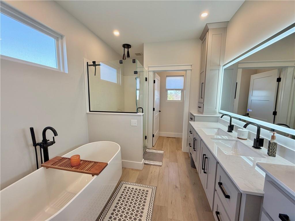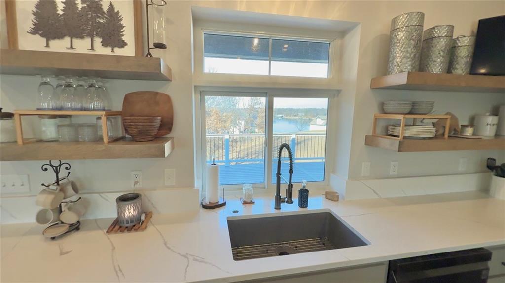 A truly distinguished residence, where refined design meets breathtaking natural beauty. This exceptional custom-built, open-concept 4-bedroom, 3.5-bath home is thoughtfully crafted for elevated living, seamless entertaining, and multi-generational comfort, all framed by sweeping panoramic lake views. At the center of the home, the designer kitchen blends sophistication and function with open shelving, an expansive island with seating, oversized storage drawers, and a stunning 7×7 walk-in pantry ensures a pristine, clutter-free culinary space worthy of the most discerning buyer. Set on two private lots, the property offers rare space and tranquility, allowing you to enjoy golden sunrises, dramatic sunsets, and unobstructed views of Lake Viking’s Fourth of July fireworks from the comfort of home. Every detail has been curated to embrace the lake lifestyle while maintaining privacy and serenity. The finished lower level features soaring 10-foot ceilings and serves as a luxurious guest retreat. Modern design elements include an epoxy floor, a wet bar with a refined speakeasy ambiance, and a climate-controlled garage, creating a perfect blend of comfort and sophistication after a day on the water. Outdoor living is equally impressive, featuring a maintenance-free deck and a covered walkout patio below with a finished ceiling, ceiling fans, and dimmable soffit lighting that enhances evening ambiance while providing added security. Surrounded by mature trees, abundant wildlife, and tranquil lake scenery, this nearly new home is impeccably maintained and truly one of a kind. Additional highlights include a zero-entry design, ample storage throughout, spray foam insulation, a two-car attached garage, manicured landscaping, and a coveted corner-lot setting offering million-dollar views. Conveniently located near a lake entrance, this remarkable home delivers luxury, comfort, and timeless Lake Viking living at its finest.