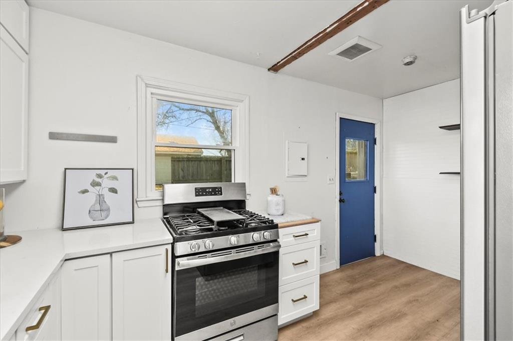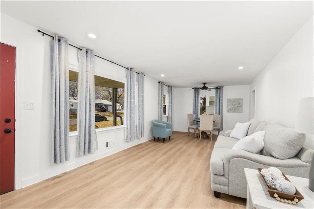 Discover your dream home in the heart of Independence, where classic charm meets modern luxury in this beautiful move-in ready ranch. Step inside to an open-concept living area that glows with natural light, highlighting the seamless luxury vinyl plank flooring that flows into an elegant eat-in kitchen. This chef-inspired space is a showstopper, featuring crisp white shaker cabinets, durable quartz countertops, and a sleek stainless steel appliance suite including a premium gas range. The attention to detail continues in the spa-like bathroom, boasting a stunning walk-in tile shower with a built-in bench, contemporary matte black fixtures, and a stylish marble-topped vanity. Outside, the property offers incredible versatility with a large level lot and a detached one-car garage perfect for a workshop or extra storage. Relax on the private back deck overlooking your spacious yard—an ideal setting for weekend gatherings or a peaceful morning coffee. Located in a quiet, established neighborhood with easy access to local amenities, this turnkey single-family home is a rare find for first-time buyers or those looking to downsize without compromising on style. Don't miss this opportunity to own a modern oasis with significant curb appeal and high-end finishes throughout.