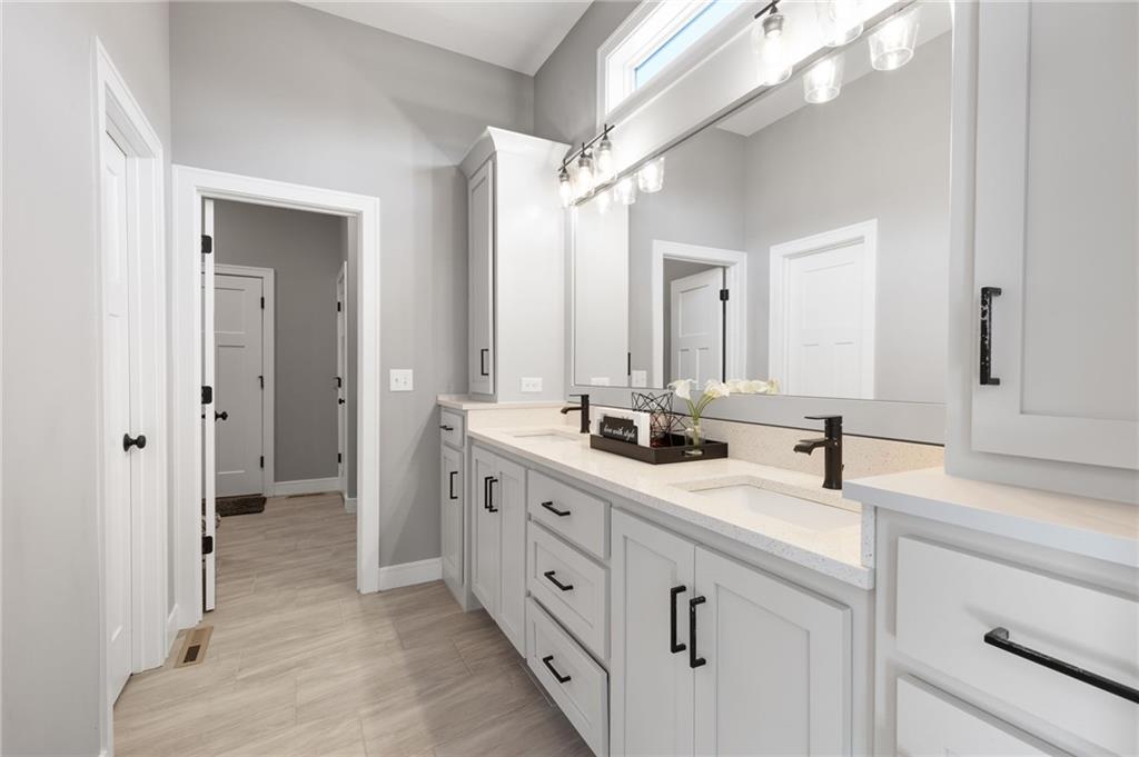 This BEAUTIFUL 5 bedroom, 3 bath home, built in 2022, combines modern design with comfortable living! The main level features 10 foot ceilings, designer finishes, and an open great room that flows into a chef’s kitchen with built-in appliances and generous storage. Primary suite offers a spa-inspired bath with an OVERSIZED ZERO ENTRY shower. The finished basement adds valuable living space with a rec room, wet bar, two bedrooms and one full bathroom. Enjoy the covered porch and spacious yard, as well as access to Pryor Ridge community amenities including trails, playground, courts, dog park, and pool!!