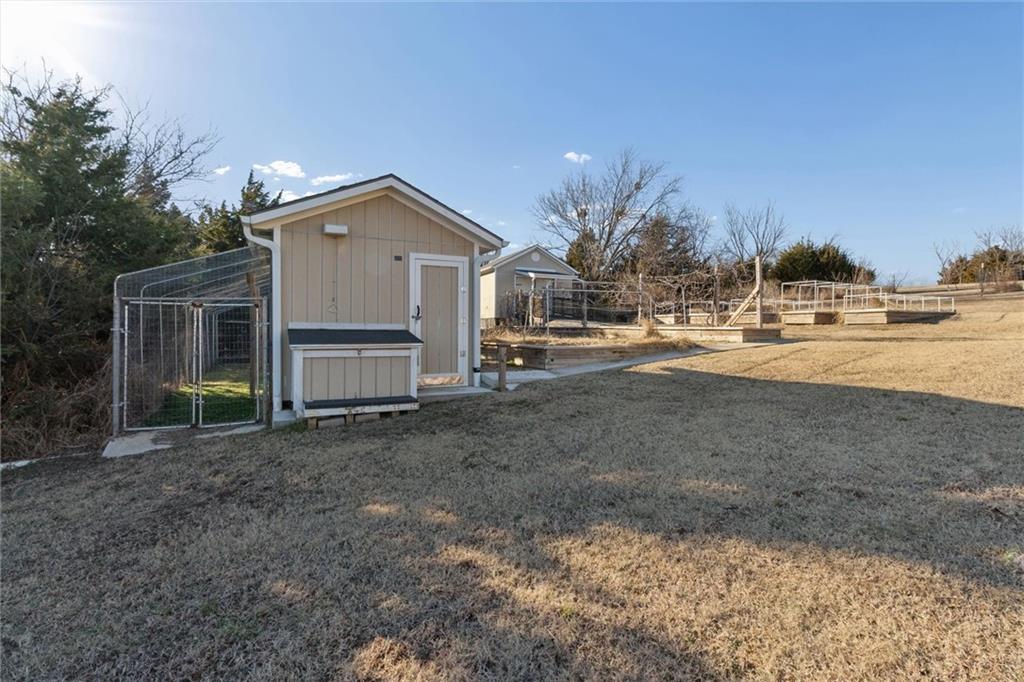 Set on 3.9 acres, this stunning hillside ranch offers 4 bedrooms, 3 baths, and 2,364 sq ft of living space with breathtaking panoramic views of Caney. The main floor features ¾ rough-hewn oak floors, an open layout with wood-burning fireplace, primary suite with private bath, and French doors leading to a spacious deck. The walkout basement includes a second living area with fireplace, garage access, guest bedroom, and full bath. Recent updates include a new roof (2024), HVAC (4 yrs), and 60-gal water heater (3 yrs). Outdoor highlights include a stocked pond, enclosed chicken coop, 15 irrigated raised garden beds, a small vineyard, fruit trees, and perennial landscaping. Extras like a storage shed, weather station, security camera, and LED lighting make this Caney Heights gem move-in ready. Schedule your showing today!