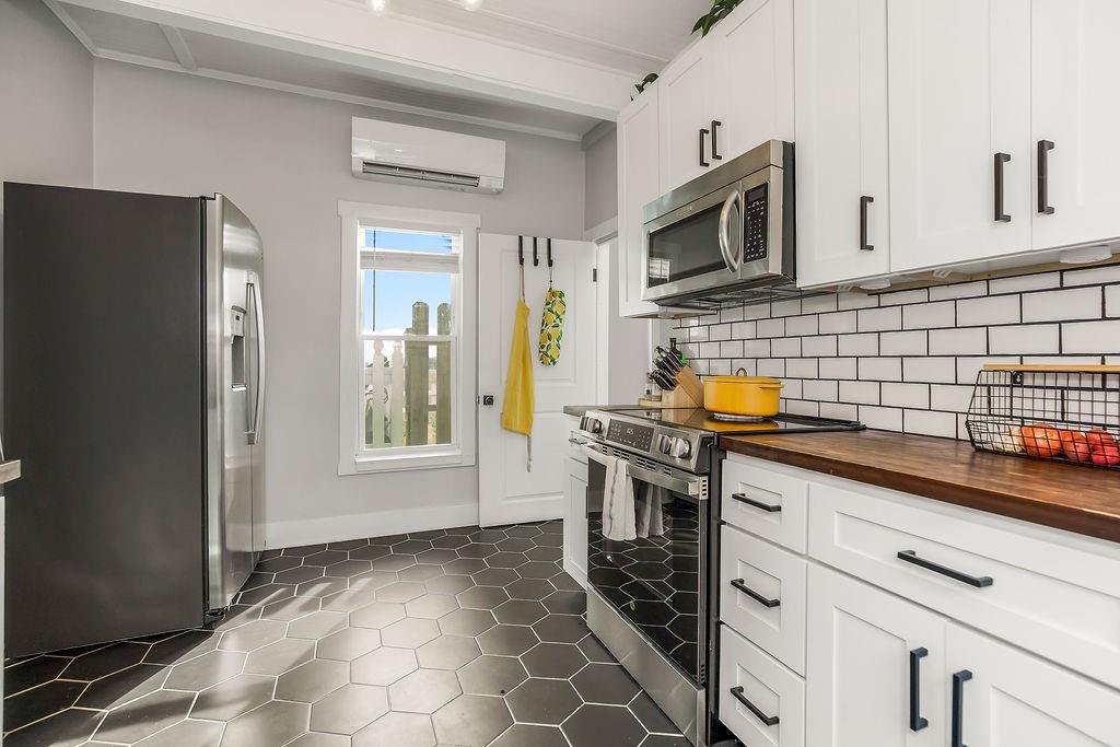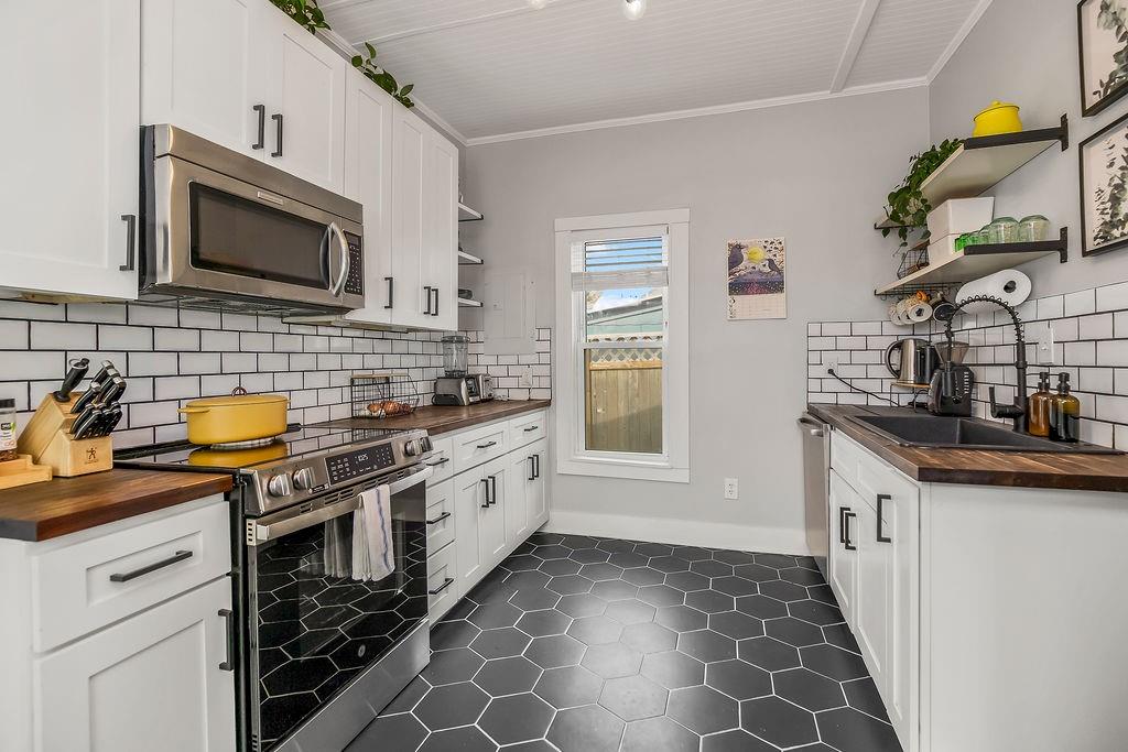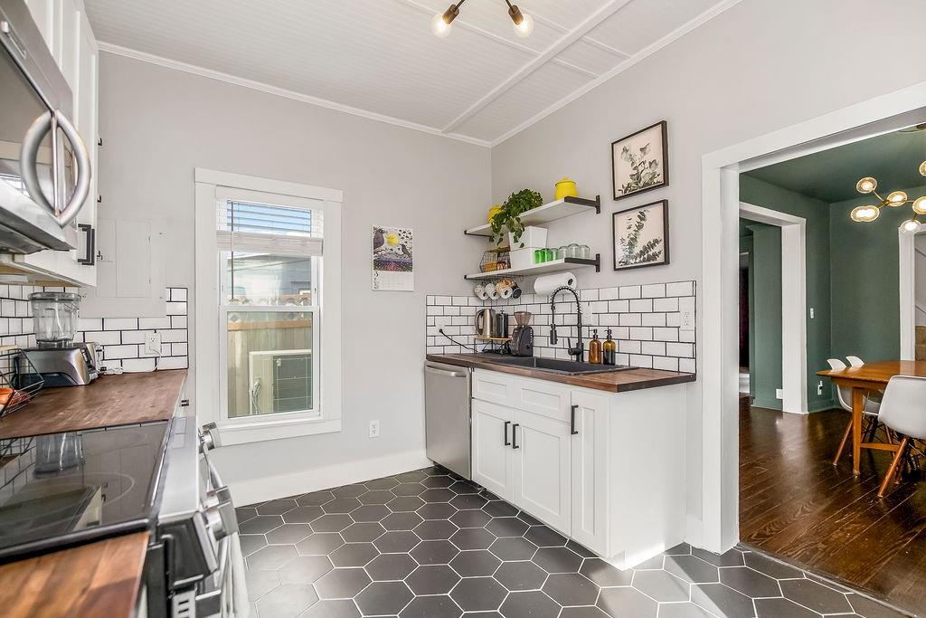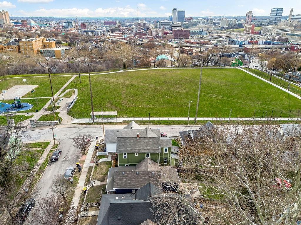 Crossroads / Westside Beauty! This stunning home blends modern updates with the charm of the late 1800s, all while offering breathtaking views of Observation Park and Downtown, just steps from your front door. Enjoy immediate access to the park offering a workout area, basketball court, playground, and only a quick walk to the heart of the city, Crown Center and more. The crisp curb appeal makes a lasting first impression with freshly painted exterior (2025/2026), beautifully stained wood accents and shutters, a covered front entry, and manicured landscaping. Step inside to a charming entry that sets the tone with playful tile. Just off the entry, the spacious dining room showcases rich wood floors and flows seamlessly into both the kitchen and living room—perfect for entertaining. The light-filled living room offers generous space and flexibility, with access to a main-level bedroom or ideal flex space for an office, den, or guest room. The remodeled kitchen features tile flooring, warm wood countertops, white cabinetry with ample storage, and stainless-steel appliances including a refrigerator and built-in microwave. Also on the main level are a convenient half bath, laundry area (washer and dryer stay), and access to the fenced backyard. The backyard is quaint and private, offering a firepit, side storage shed, and a storm shelter with newly finished cinder block walls. Upstairs, the spacious second floor includes two additional bedrooms, both with city views. The primary suite features rich wood floors and a large side room. The oversized full bath is a true showstopper, complete with a walk-in shower, stunning clawfoot tub, and a statement vanity. Additional highlights include newer windows, multiple mini-split heating/cooling units for year-round comfort, added insulation in the attic and utility areas, and fresh exterior updates. An unbeatable location, thoughtful remodels, historic charm, and an effortless flow—this home truly offers the complete package.