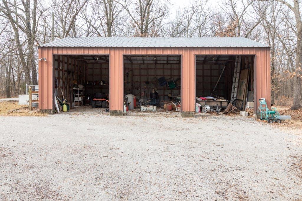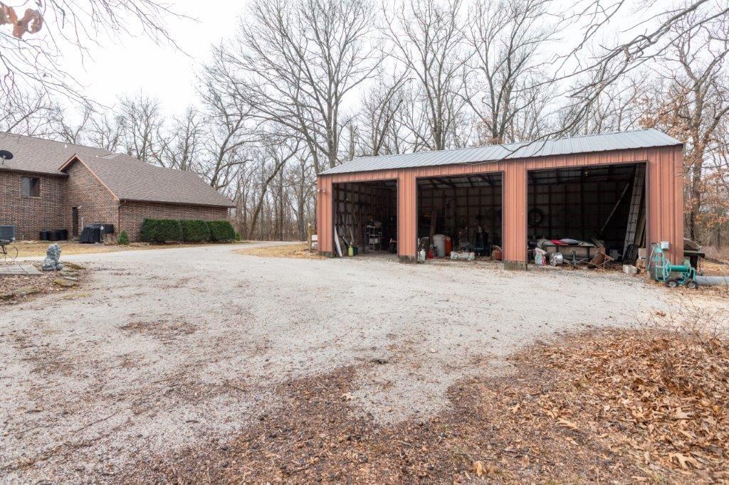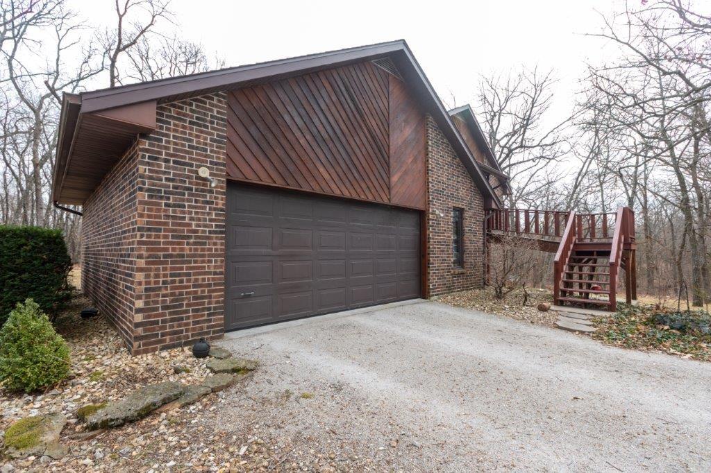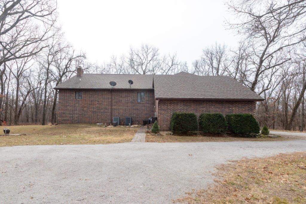 Stunningly Wooded and completely Private 48Acre Oasis, with all off-grid opportunities in place. 4 bedroom 2 ½ bath near Stockton Lake, is completely invisible in it's setback from the street, completely private, working acreage in the front, and Wooded in the back. The home is a "solar envelope" offering GREEN double ceiling and double walls on the north and south allowing interior circulation around living area to maximize energy efficiency. As the air circulates under the home the earths acts as a thermal bank to cool in the summer, very similar to the principles of GEO-Thermal and Passive Solar. In addition the home has a solar electric system and a backup generator. The entire right side of the property is a 2 story Green House, Solarium, offer magnificent views of the woods, wildlife, trees and complete privacy. HVAC is all Heatpump, and for those frigid winter gales this home offers a Free standing Wood Burning Stove, plumbed from the basement. Kitchen is chef and entertainers delight with solid surface tops, stone backsplash, stained cabinets, cabinets and more cabinets. Master on Main floor is the perfect nest offering generous space, excellent closet space, and luxury Master Bath, including his and her vanities with granite tops, separate jacuzzi tub and shower. 3 large bedrooms in basement, all sharing a huge hall bath, living/rec room, Bar and Access, and access to a large patio. This home not only offers affordable living, green living, yet nothing is missing from civilization and function. 3 bay building, garage space will fit a camper and has electrical hookups, shop, storage, with room for the most robust tinkering or on site business. Hustle! Paradise doesn't wait.