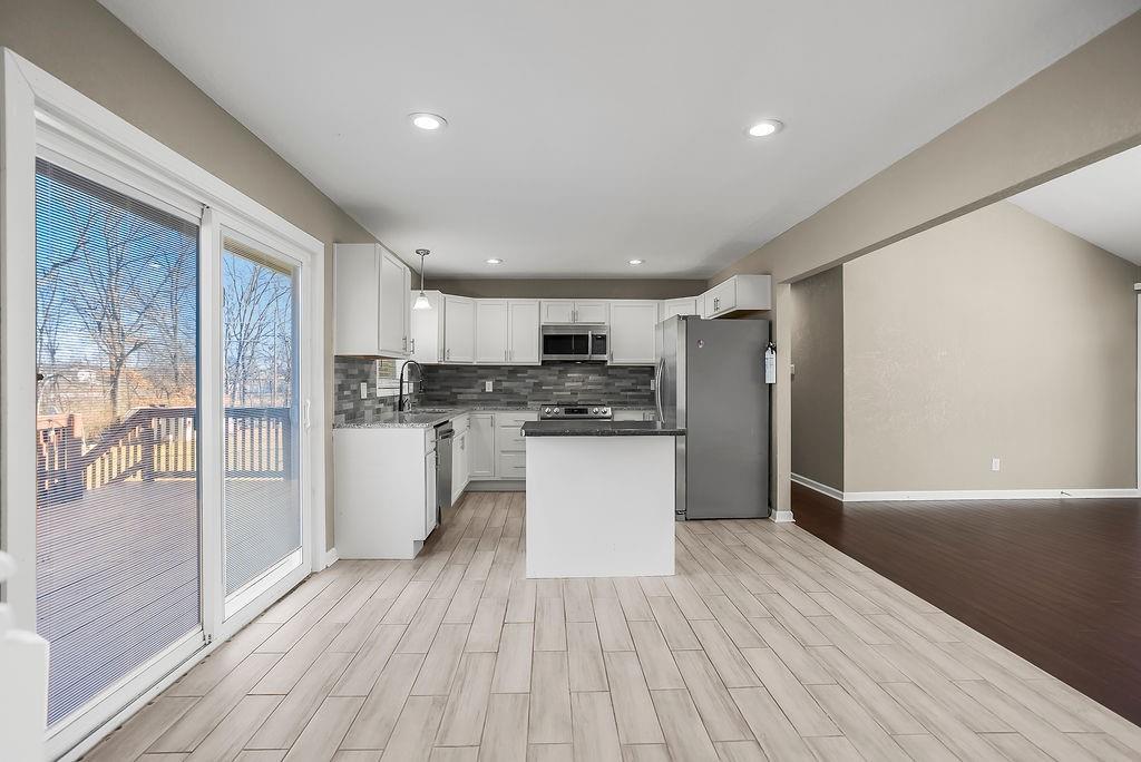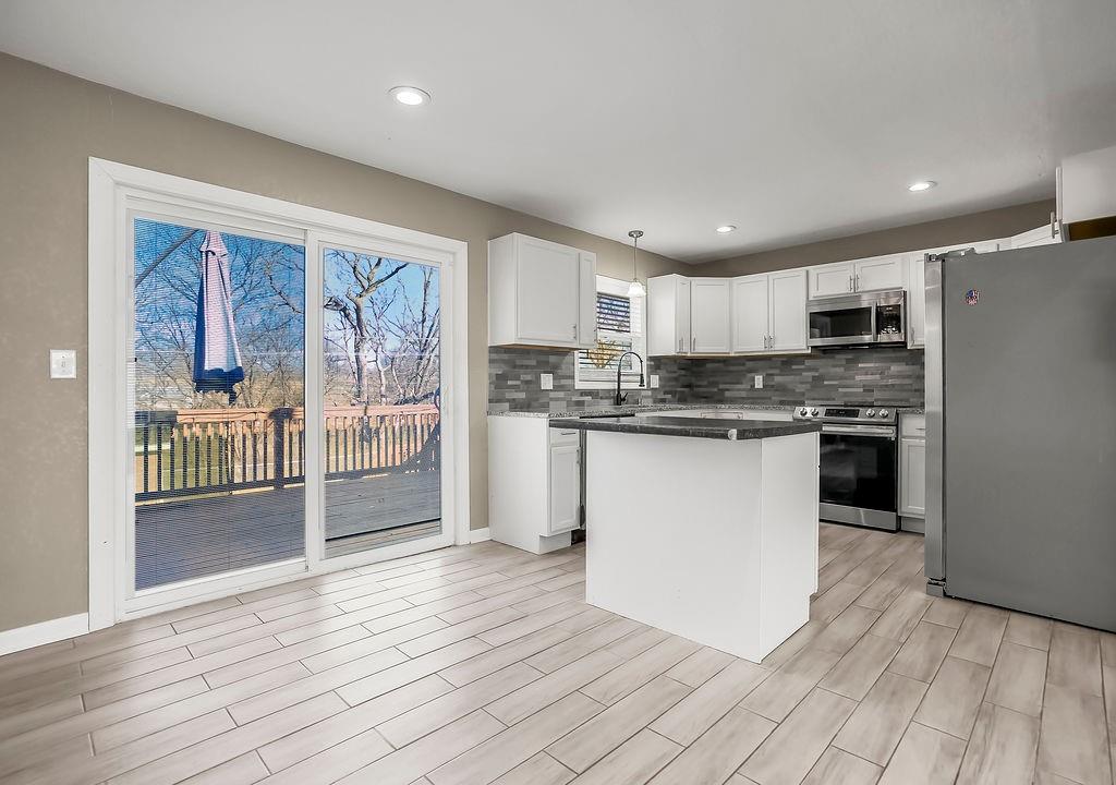 This inviting ranch-style home, recently updated throughout, offers four bedrooms and three full baths for modern comfort. The newer open kitchen, with a central island, flows into the eating area and family room. On the main level, you'll find three bedrooms, while the finished walk-out lower level features a bedroom, full bath, a non-conforming bedroom that could be used as an office or workout area and a fantastic rec room—perfect for entertaining or relaxing. Outside, the fenced backyard with an outbuilding completes the package, offering privacy and extra storage. It’s ready to be your next home!