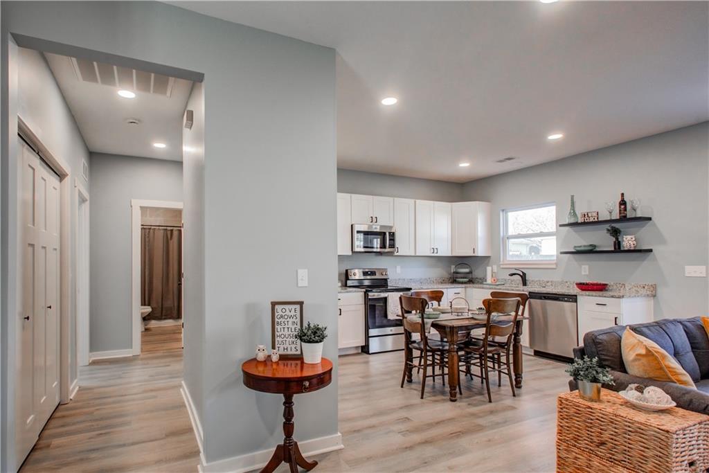 Like-new ranch home featuring an open-concept layout and high-quality finishes throughout. This well-appointed home offers three generously sized bedrooms and two full bathrooms, including a private primary suite designed for comfort, convenience, and security. The primary bedroom features a spacious walk-in closet that also serves as a built-in storm shelter, providing added peace of mind. The primary bathroom showcases a beautifully tiled walk-in shower and double vanities. The kitchen is both stylish and functional, complete with sleek granite countertops, ample cabinetry, and generous prep space—ideal for everyday living as well as hosting family and friends. The open flow from the kitchen into the living and dining areas creates a bright, inviting atmosphere. Enjoy the ease of true one-level living, with all bedrooms, bathrooms, and the laundry conveniently located on the main level. This home seamlessly blends modern design, quality construction, and low-maintenance living, making it an excellent fit for a variety of lifestyles.