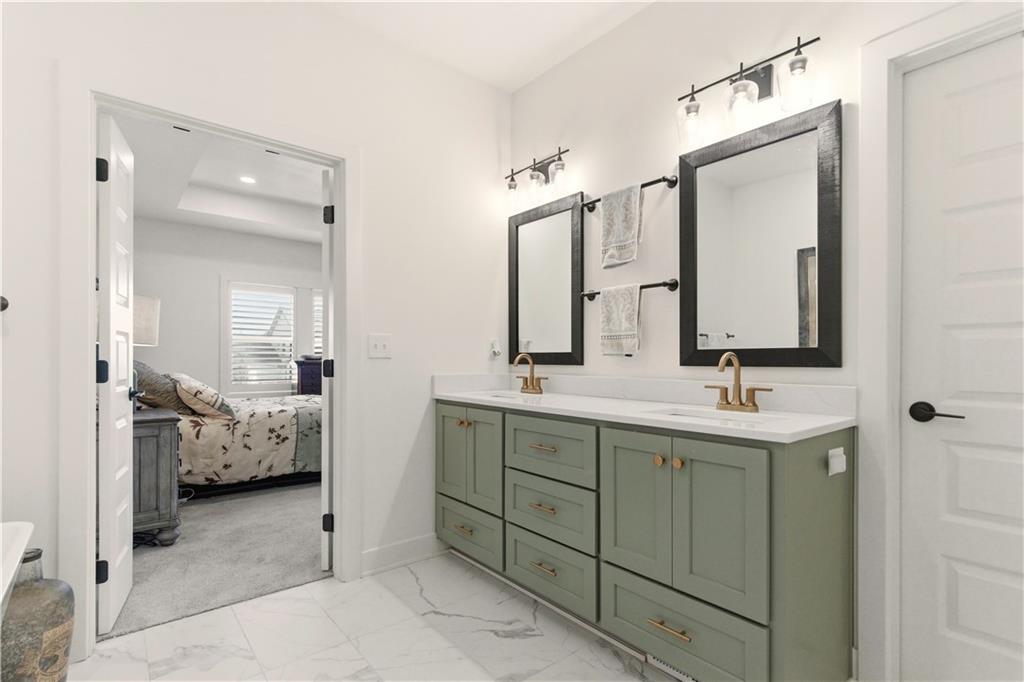 Better than New! Gorgeous Ranch home with Finished Walkout on Large Fenced Yard. Prepare to be impressed with this nearly new home with soaring 13' Ceilings, an Open Floorplan, Abundance of Windows, Amazing Wide Plank White Oak Floors on Main Level, Eye Catching Wood Beams in Great Rm Ceiling, Beautiful Wood Accents such as Windows Seats, & Plantation Shutters. Curb Appeal & the Exterior is Awesome with Timber Entrance, Huge Covered Deck, Large Patio and fully Fenced Yard. You will love the Kitchen with a Huge Quartz Island, Custom Cabinetry, Pantry,6 Burner Gas Cooktop; which opens to a lovely Breakfast area. This true Ranch is home to the Primary Bedroom and 2 additional Bedrooms on the Main Level. The Primary Bathroom will not disappoint with Quartz Counters, Large Soaking Tub, Spacious Tile Shower, and Real Stone Floors. Your Entertaining space greatly expands with a Finished Walkout offering a Large Family Room and 2nd Kitchen with Quartz Counters and areas appointed for a mini Refrigerator and Dishwasher. Note very nearby storage allows space for a Full Sized Refrigerator. 2 Spacious Bedrooms and Bathroom with adjoining exterior Patio complete the Lower Level that is perfect for a Separate Quarters. Here is your chance to skip the building process and enjoy all the perks of a nearly new home that already has the landscaping, window treatments, and all those needed home owner adds once you first move in while enjoying all the amenities of Lee's Summit and nearby Legacy Park!