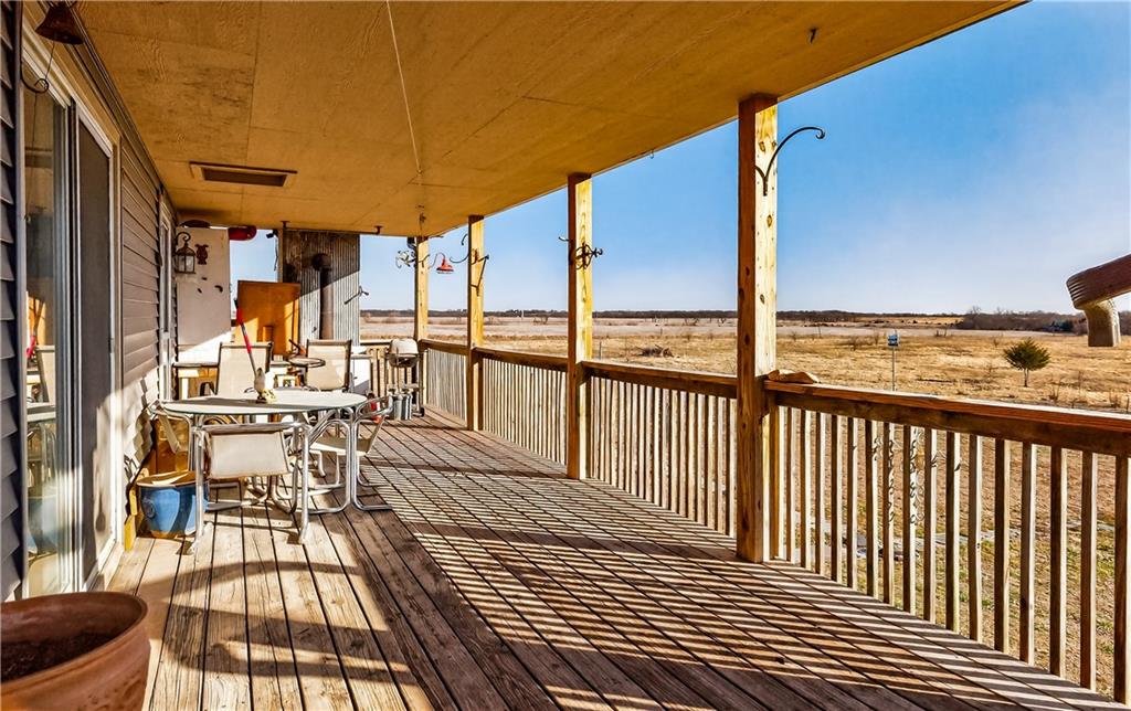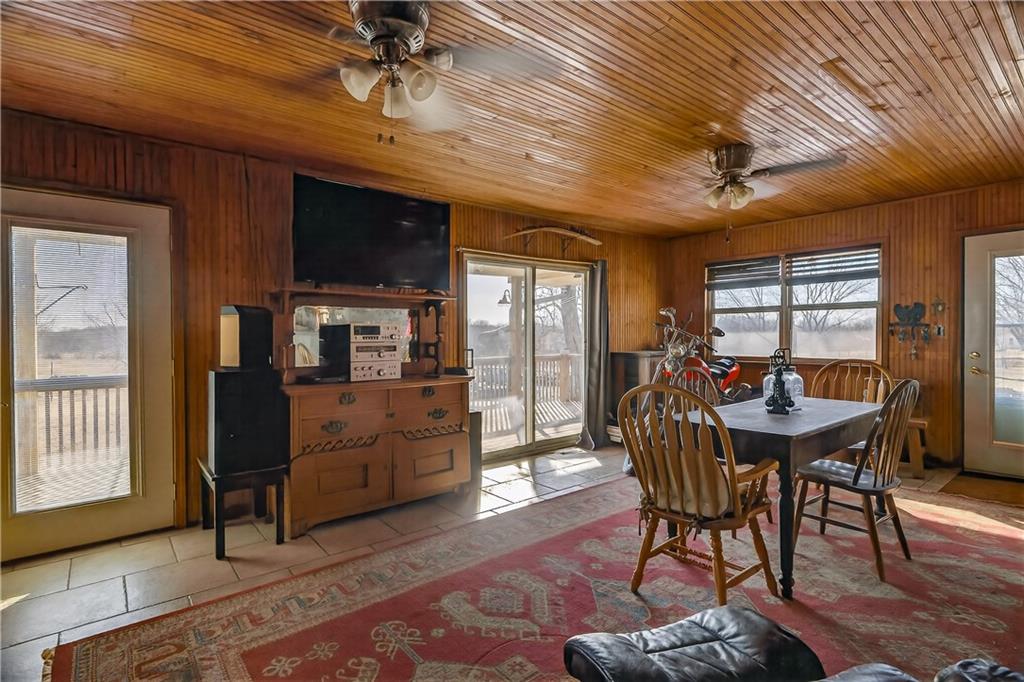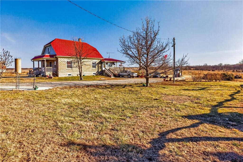 This historic homestead constructed in 1905, is a homesteaders, hunter/wildlife lovers, Air B&B potential for nearby Lake Perry or a horse-lover's dream. Architecturally classic stone home has not only withheld through time, but has had a beautiful continuance of improvements and updates on site bringing into modern times. Entering in the historic wood floors and original wood accents, doors, stairwell, flooring is evident throughout. Grand spaces, with the original parlor turned into the Primary bedroom on main floor. Two refurbished full bathrooms exist on the main floor level, with a full laundry center. Gather a book and coffee on a cold night and sit by the wood burning stove. Towards the back, elements like original doors have been used for countertop, natural beadboard accents like a log cabin on the south family room overlooking the Kansas countryside. The upstairs offers two large bedrooms. The walkout Basement has been refurbished and added onto over the years, with current owner in process of providing a kitchenette and bathroom. The exterior offers plenty of grassland on your 2 acres, with a wooded area to the west with nature walk and bridge over the waterway. A rustic fenced in pasture offers a great location for your horse care, or other farm life experiences. Utilities are reasonable with the thick stone walls and additional insulation added, plus the added wood stove on cold nights.